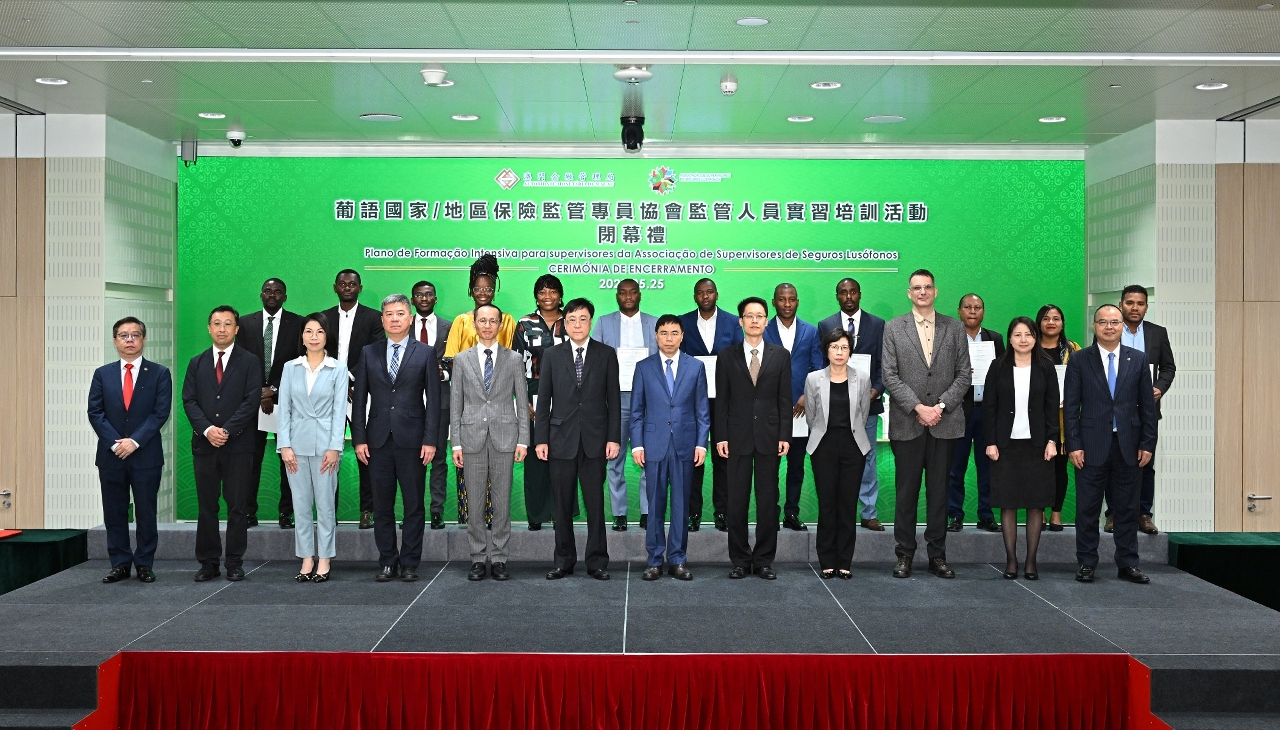 為發揮澳門“中葡金融服務平台”的作用,澳門金融管理局為葡語國家/地區保險監管專員協會(ASEL)的保險監管人員,提供了為期三週的培訓活動,並於今(25)日舉辦了閉幕禮,向12名參加培訓的葡語國家金管機構人員頒發證書。