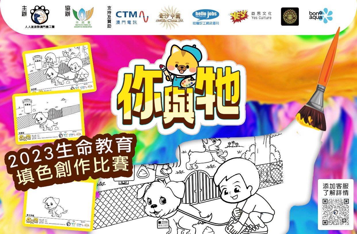 另外,“你與牠”2023生命教育填色創作比賽現正接受報名,分為幼兒組、兒童組及青少年組三個組別。有意參加者可於市政署轄下各區市民服務中心,領取指定畫紙進行創作,並於七月二十八日或之前把已填寫的參加表格及已完成的作品遞交至各區市民服務中心。上述各項活動詳情,歡迎瀏覽澳門動物衛生監督網 https://www.iam.gov.mo/canil