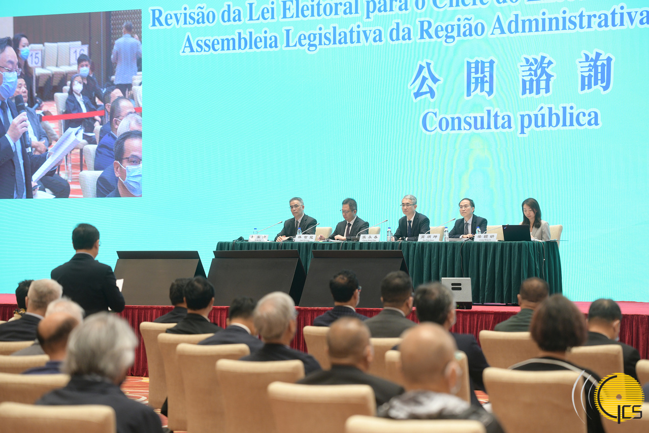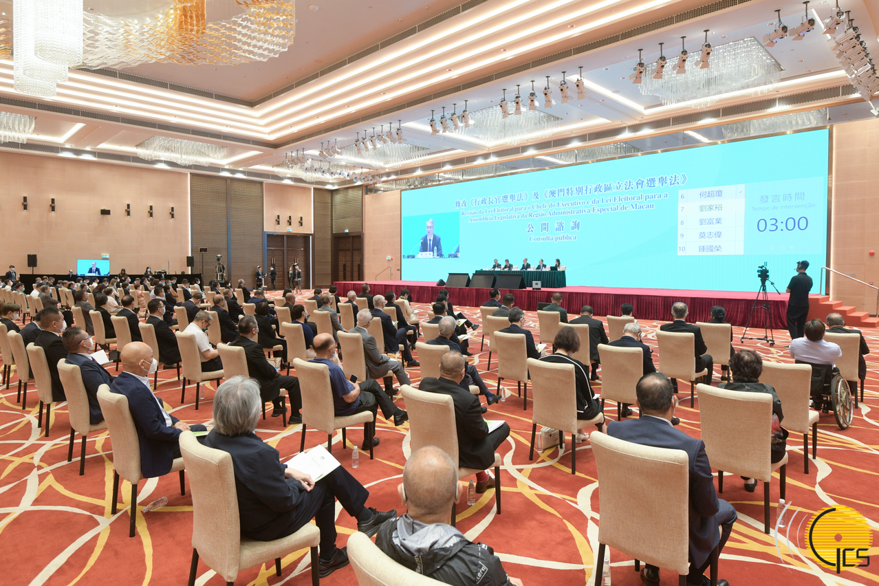 澳門特別行政區政府今(21)日下午3時在中國與葡語國家商貿合作服務平台綜合體就修改《行政長官選舉法》及《澳門特別行政區立法會選舉法》舉行第二場公開諮詢會,聽取行政長官選舉委員會委員對修法的意見和建議,約160名委員出席諮詢會。
