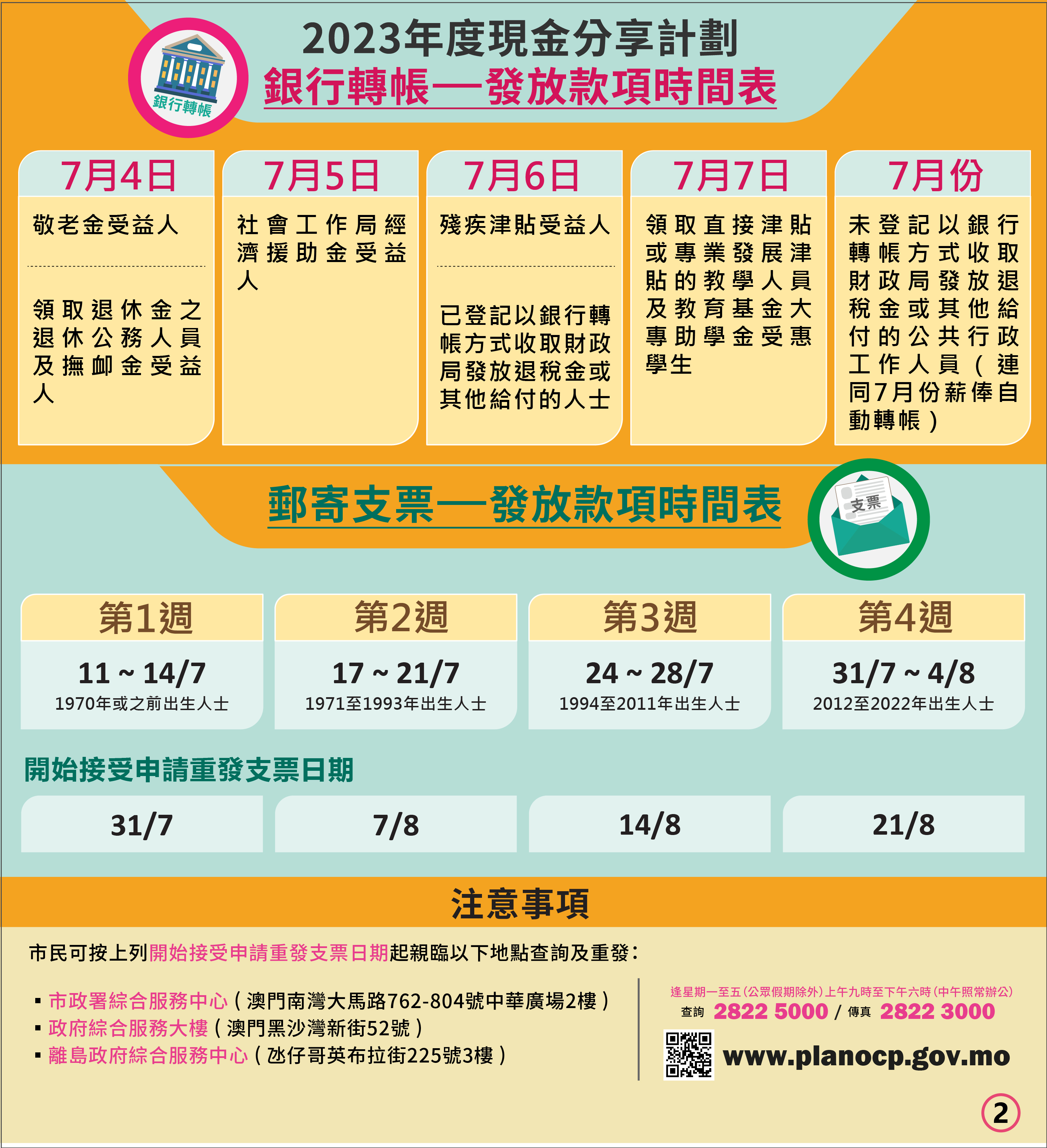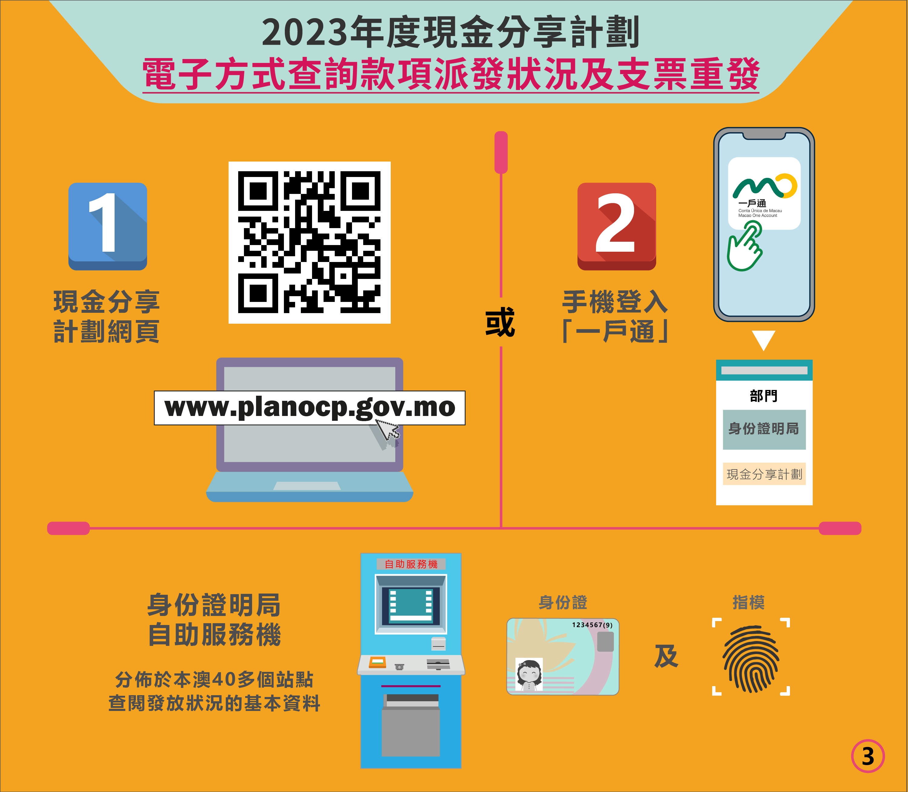 1. 現金分享計劃網頁:www.planocp.gov.mo;或