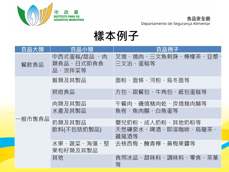 第二季合共抽檢六百四十八個食品樣本,包括三百五十五個一般市售食品樣本和二百九十三個餐飲食品樣本,抽檢點涵蓋本澳各區食肆、外賣店、超級市場、雜貨店及百貨公司等。市政署對相關食品樣本進行了檢測,當中微生物檢測項目包括沙門氏菌屬、單核細胞增生李斯特氏菌、蠟樣芽孢桿菌等常見致病菌;化學檢測項目包括重金屬、食品添加劑及禁用物質等;而輻射檢測項目則包括銫同位素和碘同位素等放射性物質。