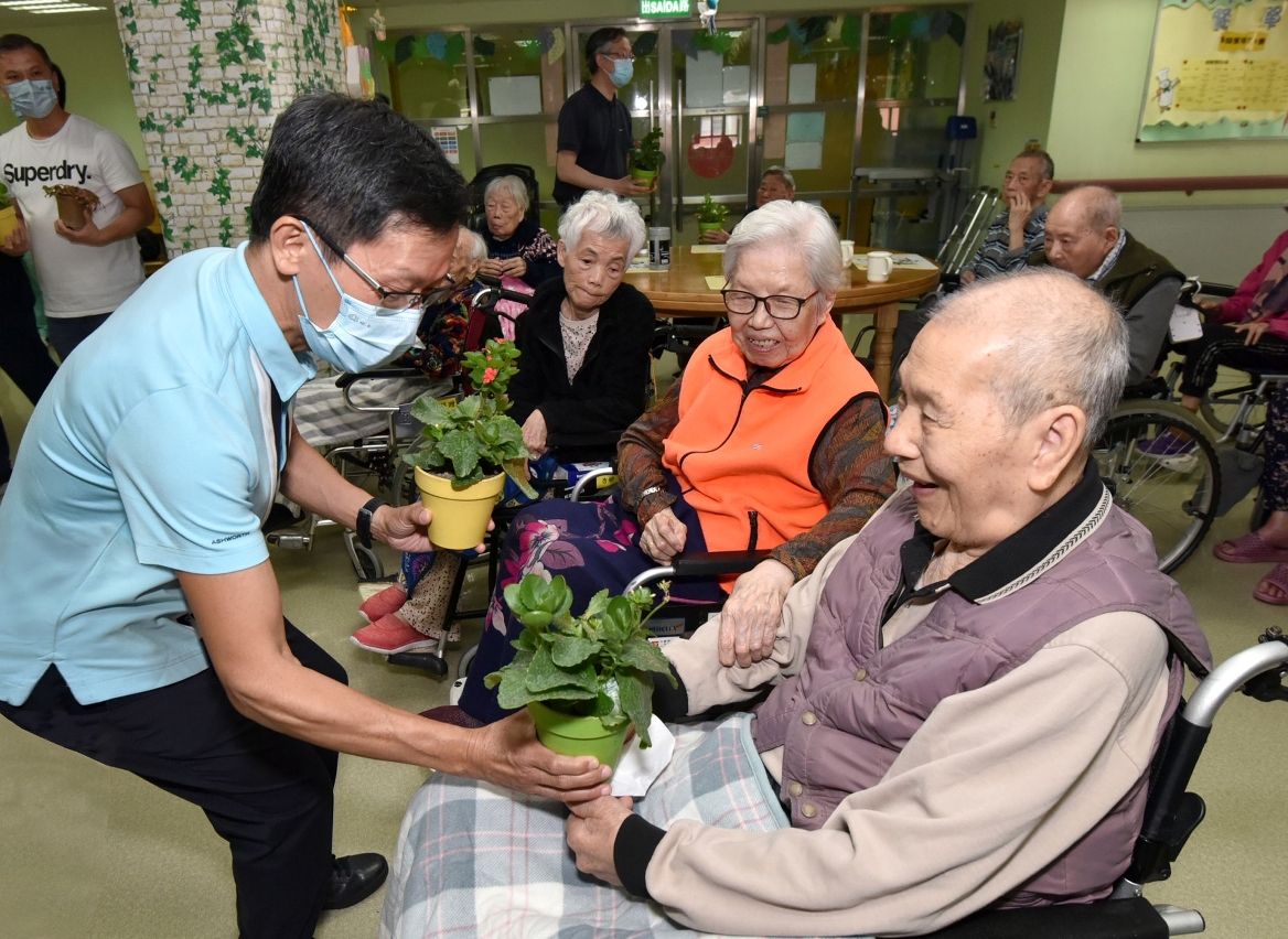 活動當日,市政管理委員會委員林紹源連同市政諮詢委員會委員梁頌衍、辜文達、羅錦焜、邢榮發、陳溥森、林家全一行,帶領義工隊前往菩提社會服務大樓,在釋宏法法師陪同下向院友派送小盆栽,義工亦與長者們進行互動遊戲。市政署特意挑選了美觀且易於照顧,並適合院舍長者於室內種植的植物品種,同時向長者講解如何照顧盆栽,期望他們能更好地享受種植的樂趣。園藝種植除可豐富長者的休閒活動,更可讓其生活環境變得更溫馨舒適。