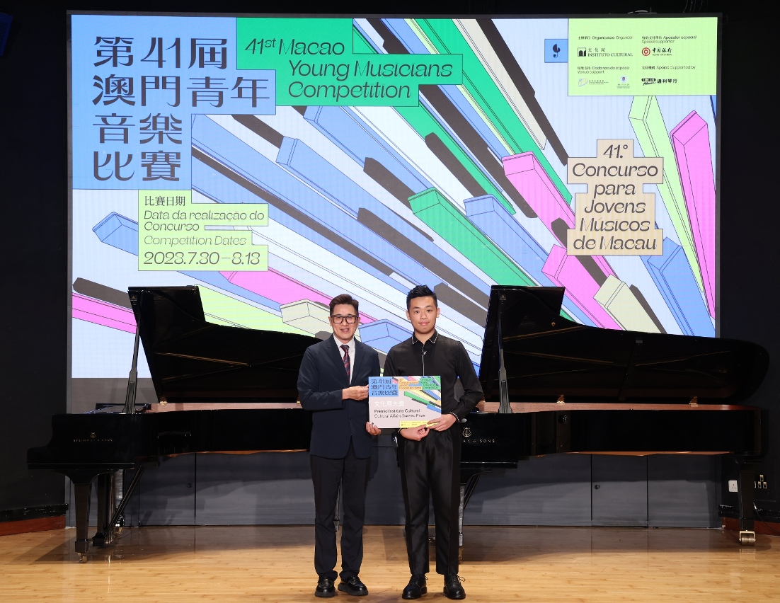 文化局第四十一屆澳門青年音樂比賽於8月13日在澳門旅遊學院啟思樓大禮堂舉行特別大獎賽及頒獎儀式,由文化局副局長鄭繼明及特約支持單位中國銀行(澳門)股份有限公司總裁陳曉平頒發三項特別大奬,今屆比賽圓滿結束。
