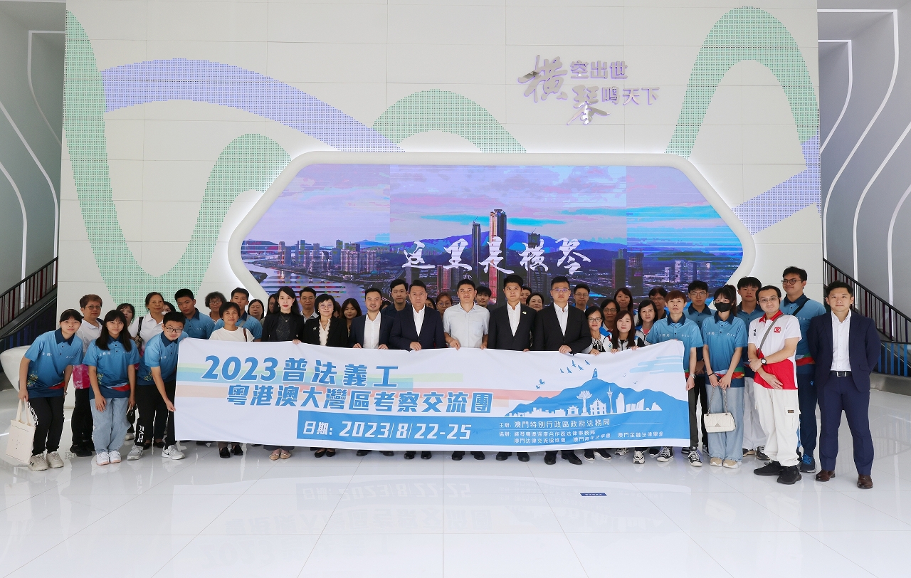 由法務局主辦,澳門法律交流協進會、澳門金融法律學會和澳門青年法學會協辦的“2023普法義工粵港澳大灣區考察交流團”於8月22日至8月25日前往橫琴粵澳深度合作區和廣州進行考察交流,交流團由澳門青年法律工作者、“普法動力”青年義工團、澳門婦女普法義工團、澳門社區普法義工團和工青普法義工團,合共50人組成。