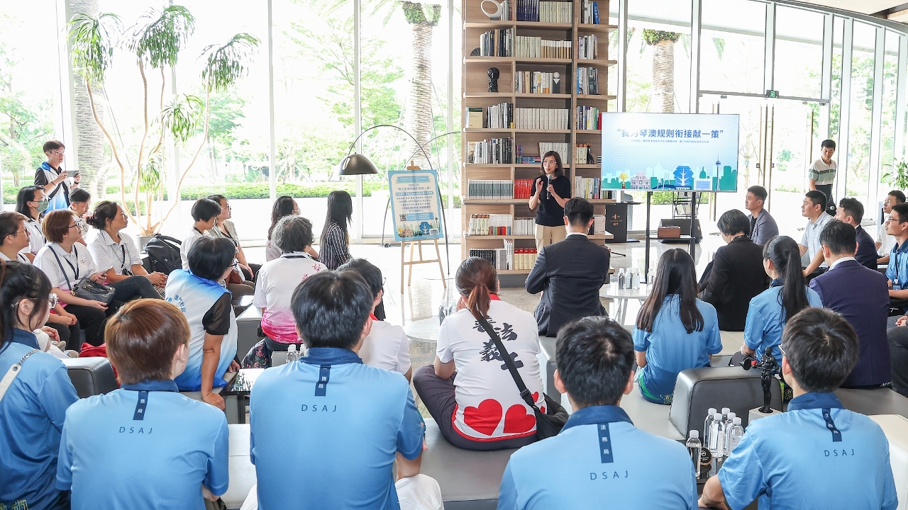 交流團首日前往了橫琴粵澳深度合作區,參觀合作區規劃展示廳、橫琴大橋“二綫”海關監管作業場所、“澳門新街坊”項目以及琴澳國際法務集聚區等,深入了解合作區的發展情況,同時亦參加了“我爲琴澳規則銜接獻一策”專題調研及綫下沙龍活動,深合區法律事務局鍾頴儀局長與團員們進行座談,並聽取大家就通關便利、跨境執業、社區配套等方面提出的意見和建議。