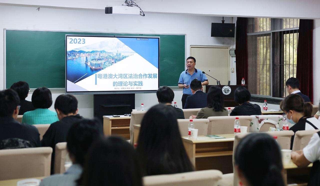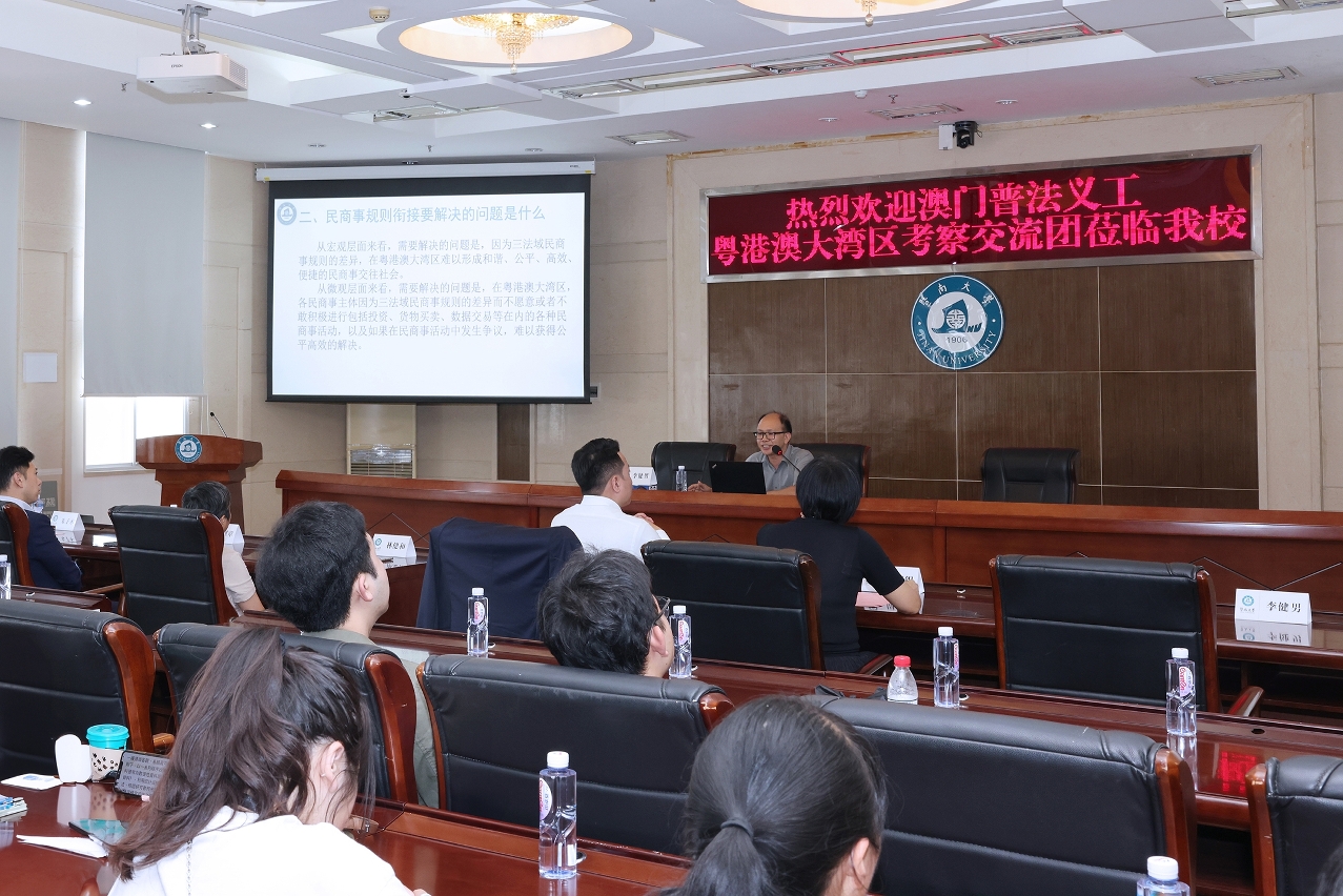 8月23日至25日交流團於廣州繼續行程,期間前往了中山大學和暨南大學學習交流,中山大學法學院郭天武教授和暨南大學法學院李健男教授分別以“粵港澳大灣區法治合作發展的理論與實踐”和“粵港澳大灣區民商事規則銜接之解釋”為主題向團員們進行授課。