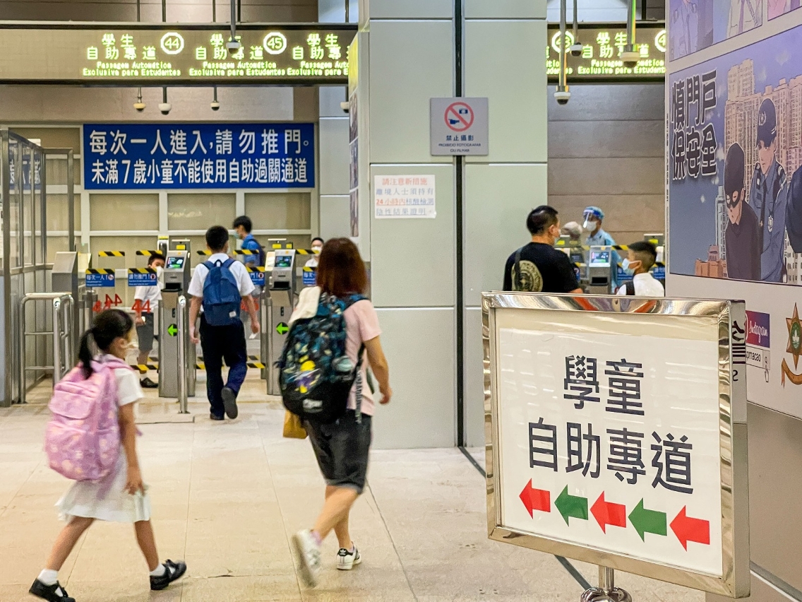 為確保跨境學生在出入境高峰時段能順暢通關,關閘、青茂及橫琴口岸澳門口岸區出入境事務站的跨境學生專道將於9月1日重啟。