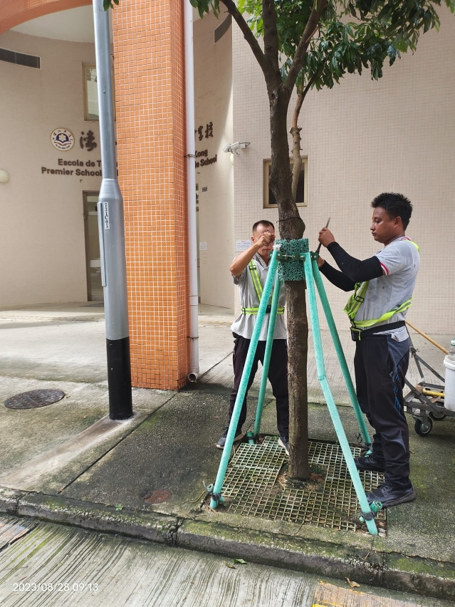 市政署已有序安排疏剪樹木濃密的樹冠,除去病枝、枯枝和結構撕裂的樹枝,以減輕樹冠重量及受風面積,降低樹木在暴風雨時倒塌的機會。此外,亦會檢查樹木支撐架及鋪設保護格柵覆蓋泥土。