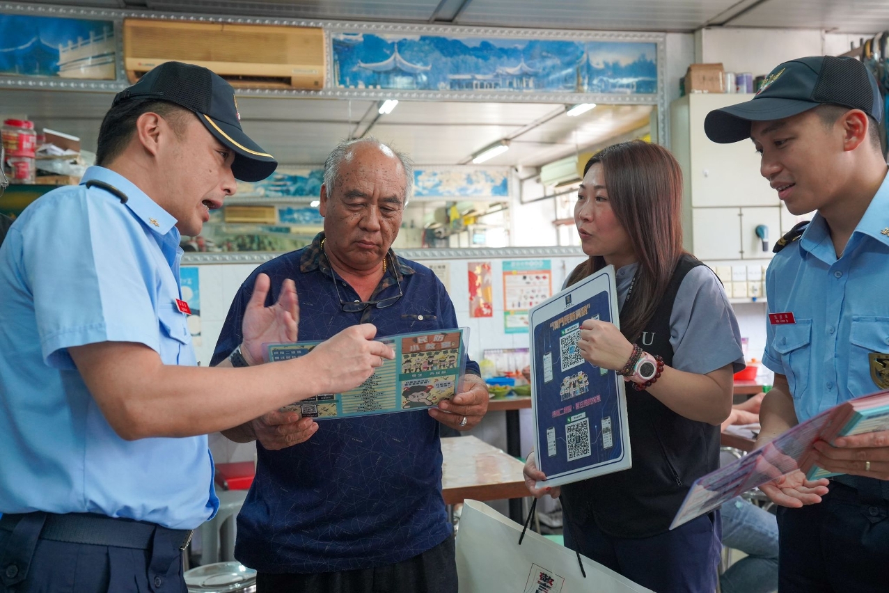 消防局於傍晚續派出人員組成小隊到市區進行宣傳,並派出車輛到市面進行巡邏,以目測方式檢視建築物招牌及棚架等設施的安全情況。