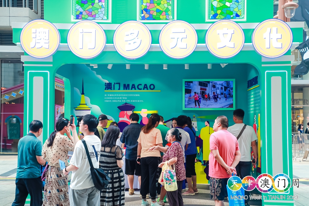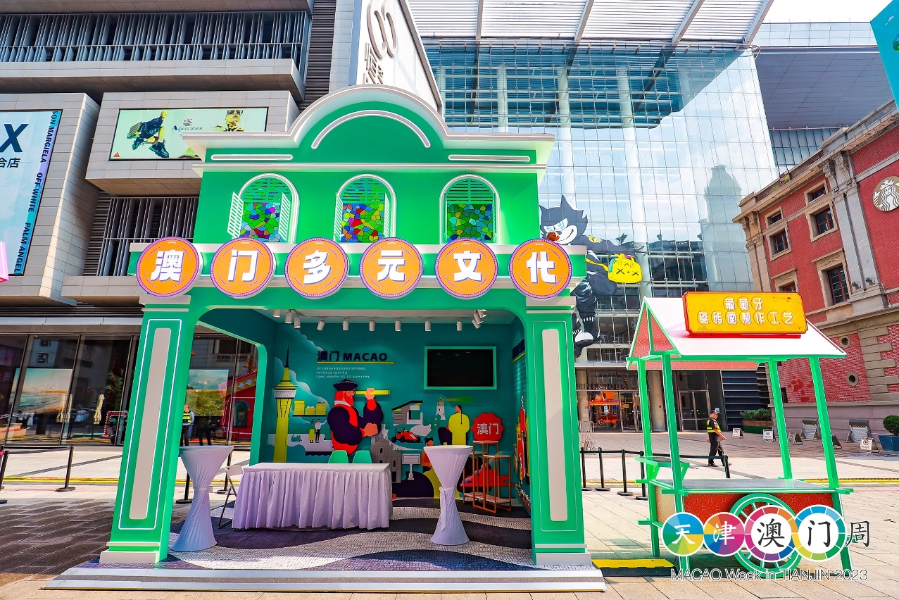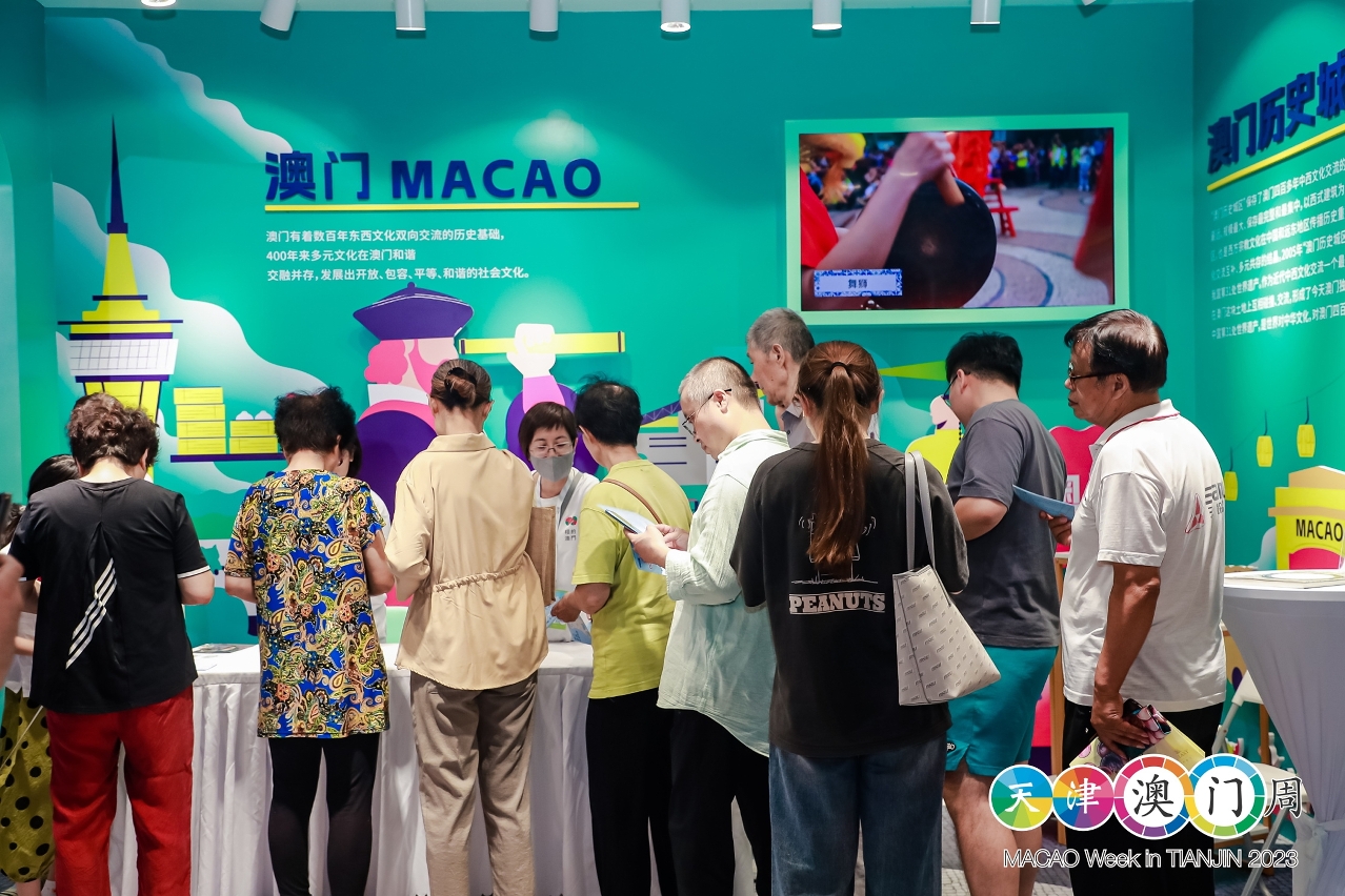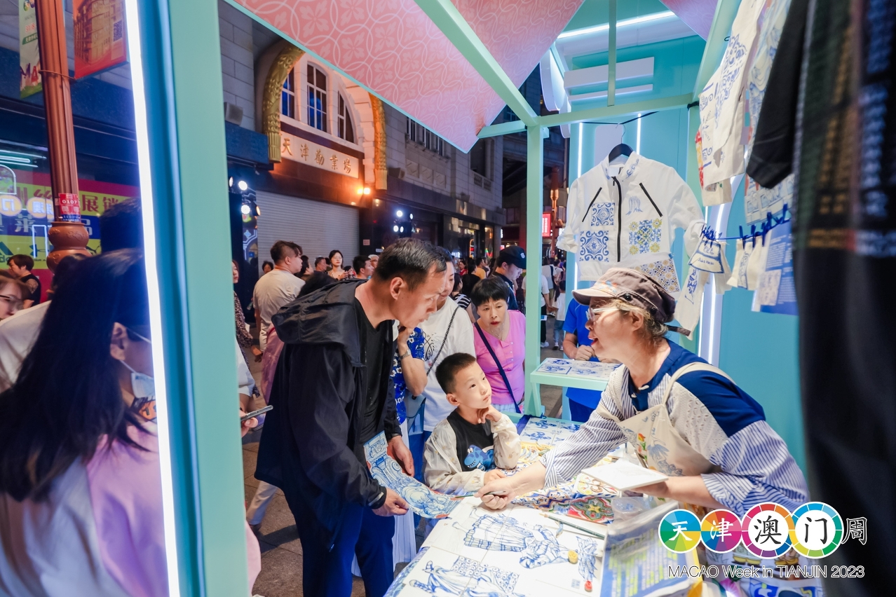 文化局展位以“澳門多元文化”為主題,澳門世界文化遺產景點作為主軸,讓當地民眾瞭解澳門中西文化共融的特色、歷史淵源,以及別具建築特色的世遺景點,呈現澳門歷史城區之美。此外,文化局是次組織葡萄牙瓷磚畫手藝人參與“天津澳門周”,展示及介紹葡萄牙瓷磚畫製作工藝,駐場人員向到訪者推廣澳門非物質文化遺產、藝文節慶盛事等豐富的文化元素,宣傳澳門豐富多彩的中西文化融合的特色,藉以提升觀眾訪澳意欲,展開澳門文化城市探索之旅。展位吸引不少當地居民駐足參觀,瞭解澳門文化之美,有到訪者表示曾到澳門旅遊,感受親切,對澳門的印象良好,將來會再到澳門展開文化旅遊。