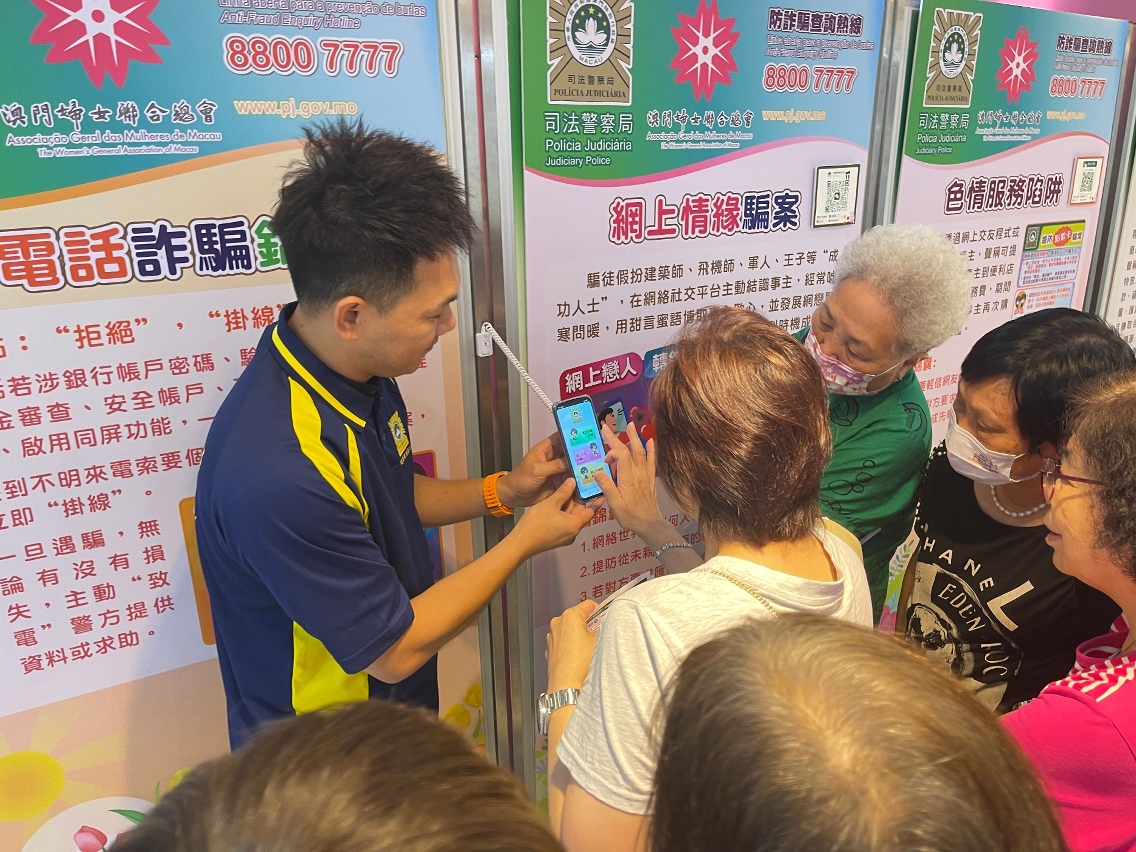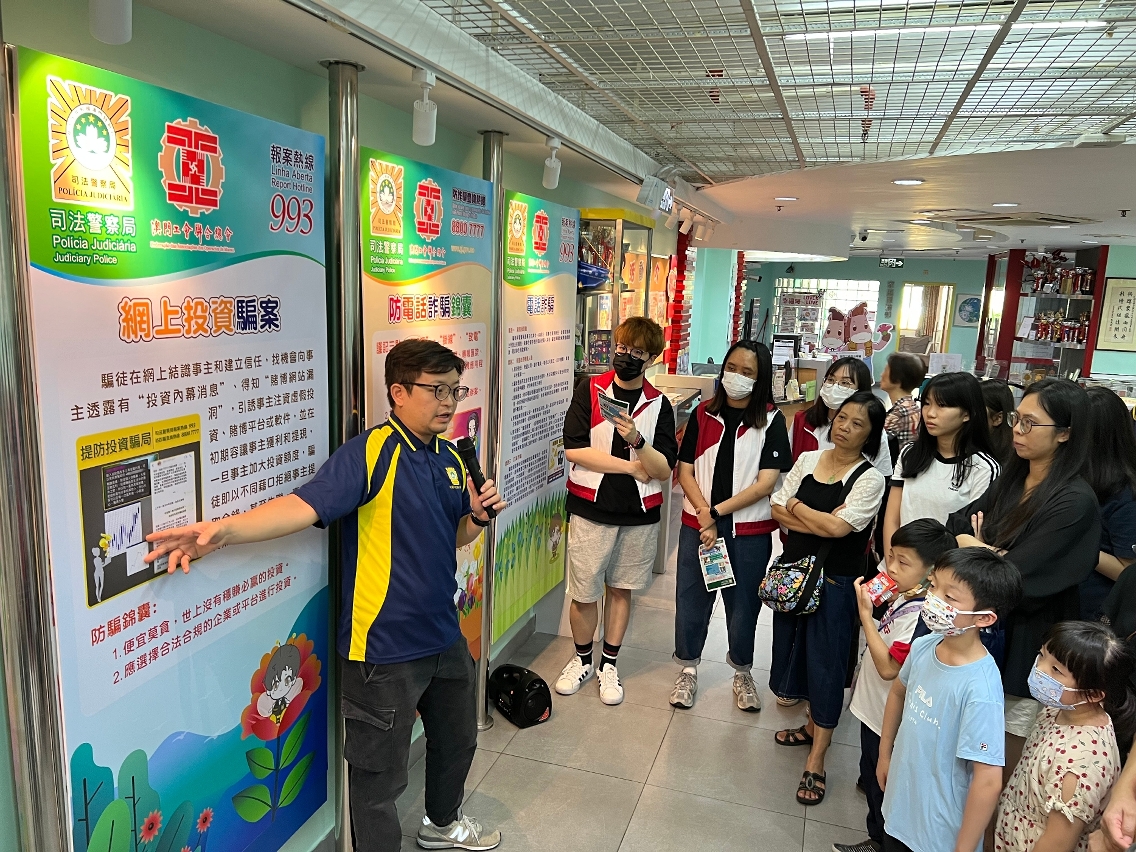 為提高居民預防電話及網絡詐騙的意識,司法警察局與“司警局大廈防罪之友”的社團成員合作,於社團轄下的辦事處及社區服務中心設立防騙宣傳教育展板,向居民宣講防騙資訊,提醒他們加強警惕,勿讓騙徒有機可乘。