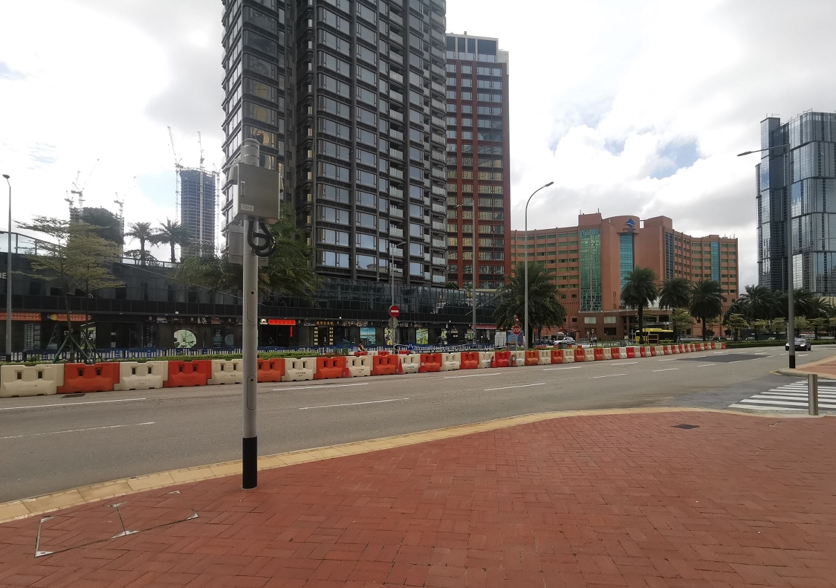 蓮花海濱大馬路中央分隔帶缺口位置加密及延長水馬以加強圍封效果