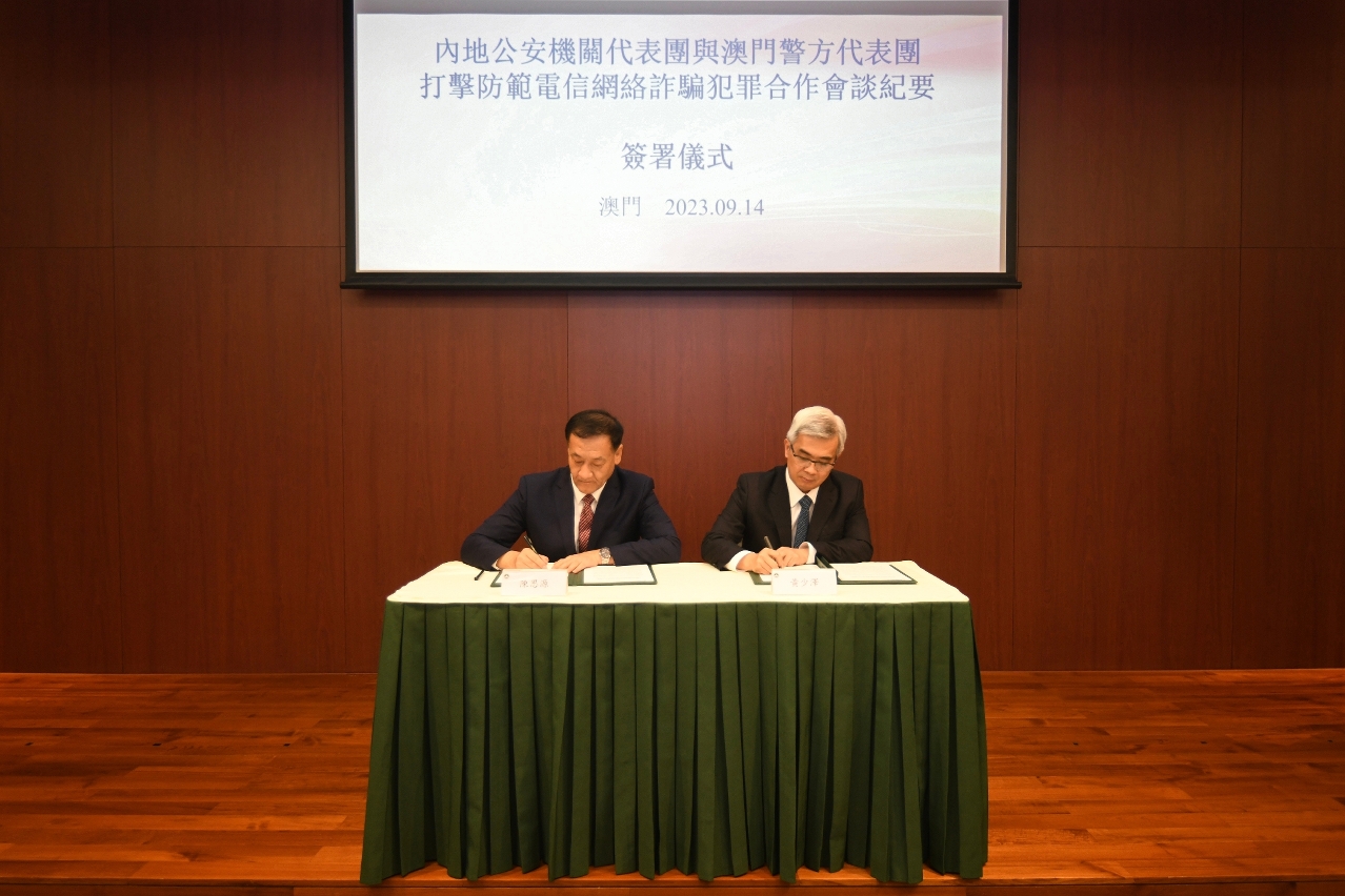 會後,雙方簽署了《內地公安機關代表團與澳門警方代表團打擊防範電信網路詐騙犯罪合作會談紀要》。