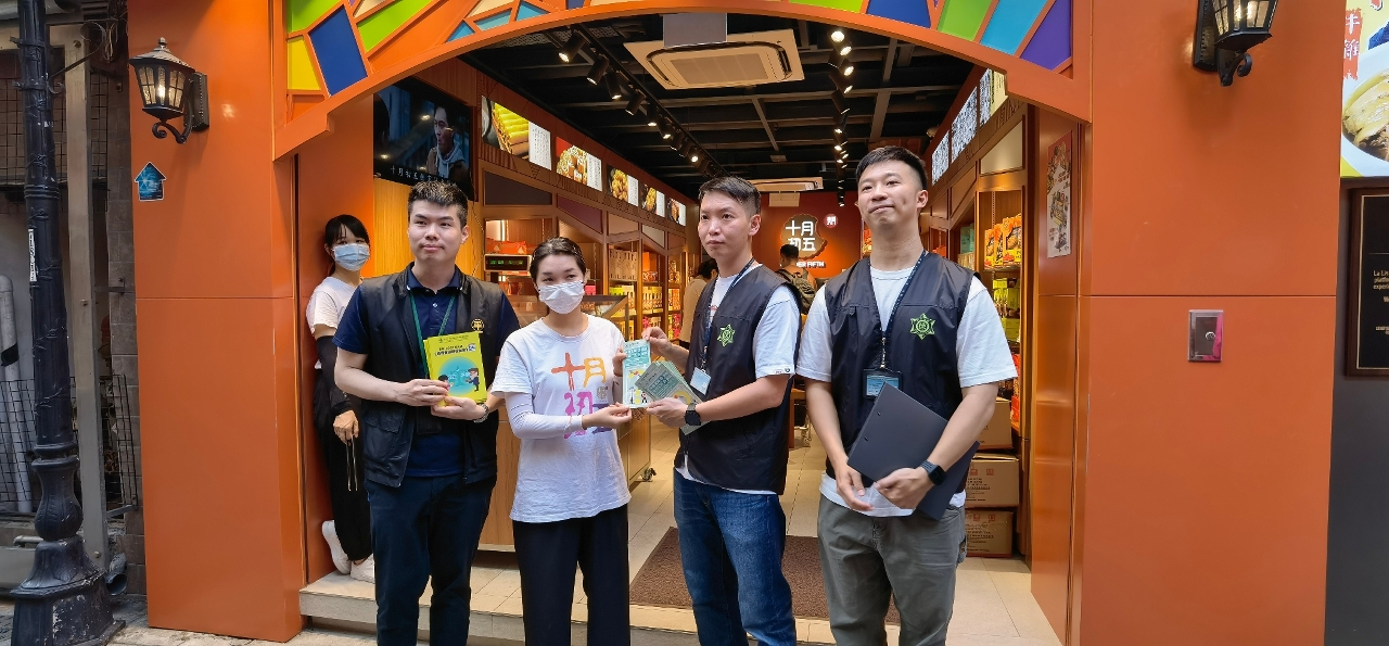 消委會與澳門海關連日聯合到全澳各區向黃金首飾、藥房及手信店等零售業商戶派發《消費者權益保護法》小冊子,以及保護知識產權等法律的宣傳單張,敦促商戶守法與誠信經營,共同維護澳門旅遊購物城市的良好形象。