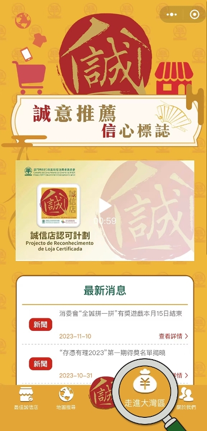 “誠信店”小程序資訊豐富、功能多元,為加強對大灣區居民來澳跨域消費的保障,消委會特別在小程序內設“走進大灣區”專區,並率先發佈“來澳旅遊消費提示”,讓大灣區內地居民來澳旅遊消費時,有更多維權信息以供參考,加強維權的能力,增加跨域消費的信心。