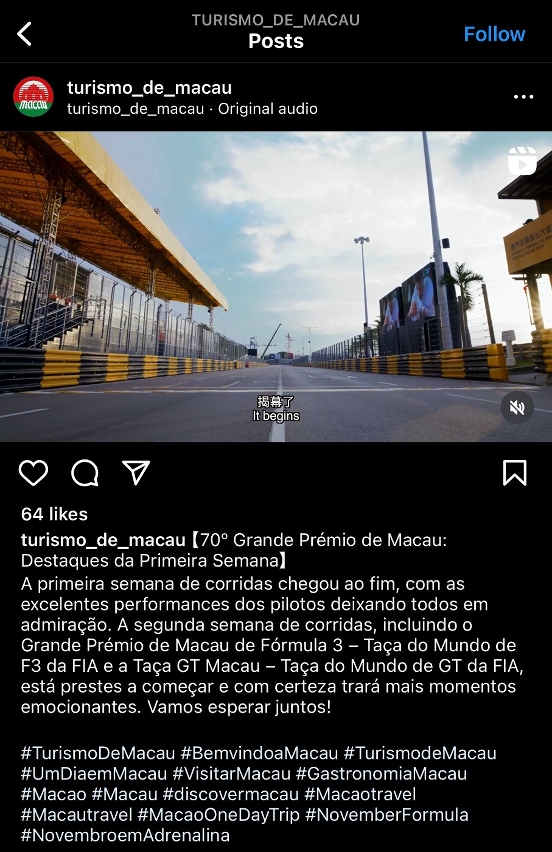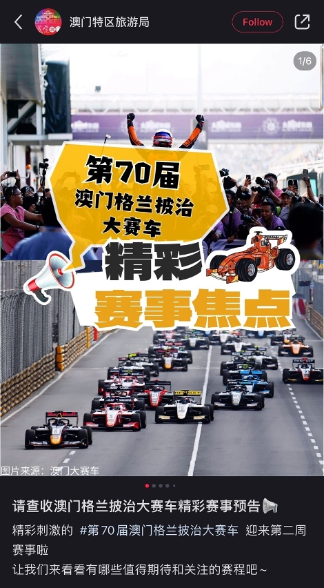 • 旅遊局各社交媒體活躍推廣“澳門格蘭披治大賽車”