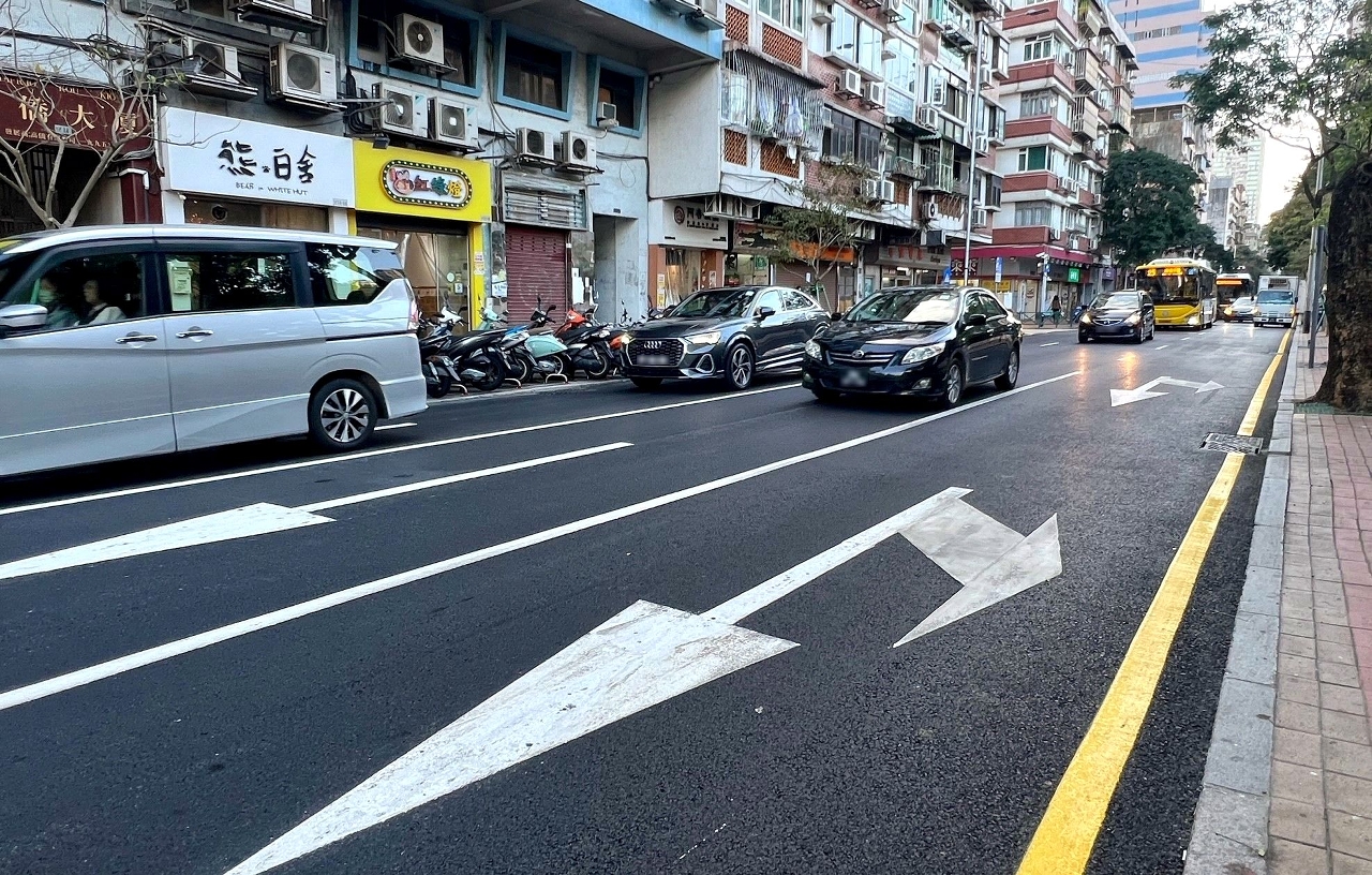 市政署早前以即刨即鋪,夜間施工日間通車模式,分階段對美副將大馬路重鋪新型瀝青,工程如期竣工,今(29日)已恢復正常通車。
