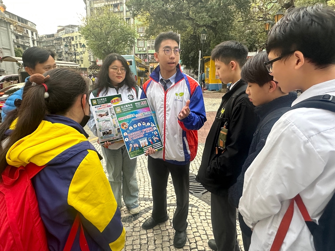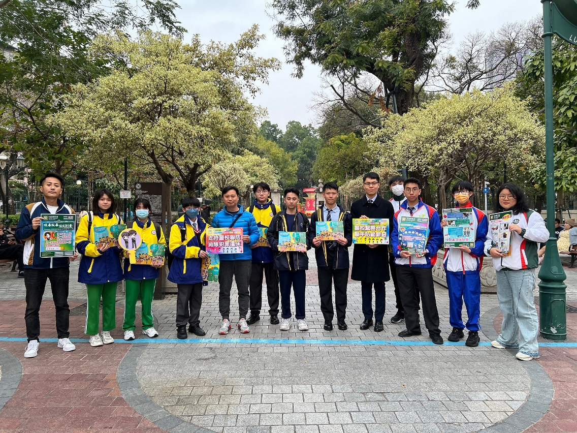 鑑於春節假期將至,青少年外遊或參與節慶活動的機會增加,受到不法分子侵害的風險亦相對提高,為防患於未然,司警局關注少年組聯同已加入“學校安全聯絡網”的學校代表、以及組織“社區安全青年領袖計劃”和“滅罪小先鋒種子計劃”學員,在澳門和氹仔區展開“警校聯合防罪巡查”工作,前往校園周邊和青少年聚集的地點巡查及宣傳防罪資訊,尤其提醒青少年防範毒品犯罪和電訊網絡詐騙,避免受到侵害。