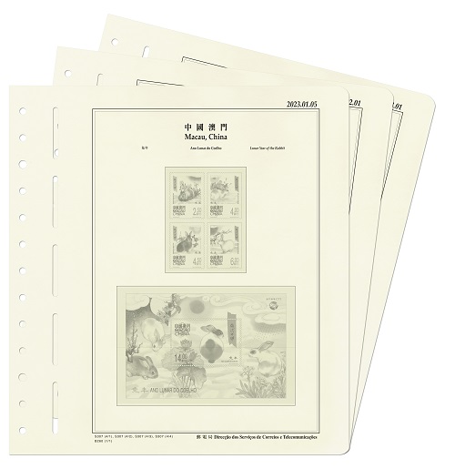 郵電局將於二零二四年二月一日起,在郵政總局集郵商店及通訊博物館發售2023年澳門郵票貼票頁。貼票頁內印有該年的澳門郵票圖樣,顧客可把已收集的澳門郵票和小型張按照圖樣放入貼票頁內,以便收藏。