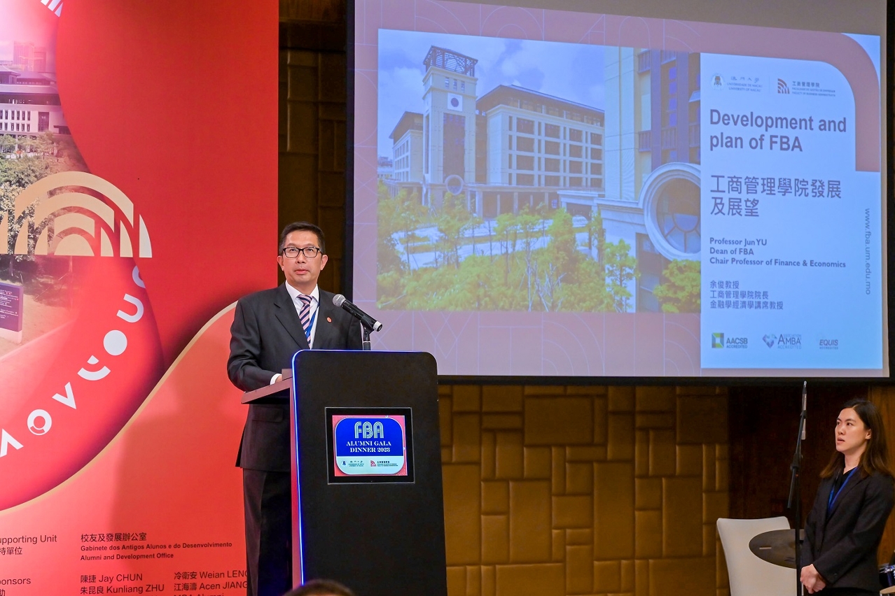 澳大工商管理學院院長余俊以“工商管理學院的過去、現在和未來”為題,回顧學院近年的重要發展,例如成為全球僅佔1%同時獲得三個國際商學院認證的商學院,開辦工商管理博士(DBA)和高級管理人員工商管理碩士(EMBA)等。此外,他向校友們講述了學院未來的發展方向和戰略,包括在配合社會期望和大學發展的前提下,學院的願景、使命以及發展藍圖。他還鼓勵校友們與學院建立更緊密的聯繫,共同推動學院未來的發展,培養更多優秀人才,為澳門和整個社會的繁榮作出更大的貢獻。