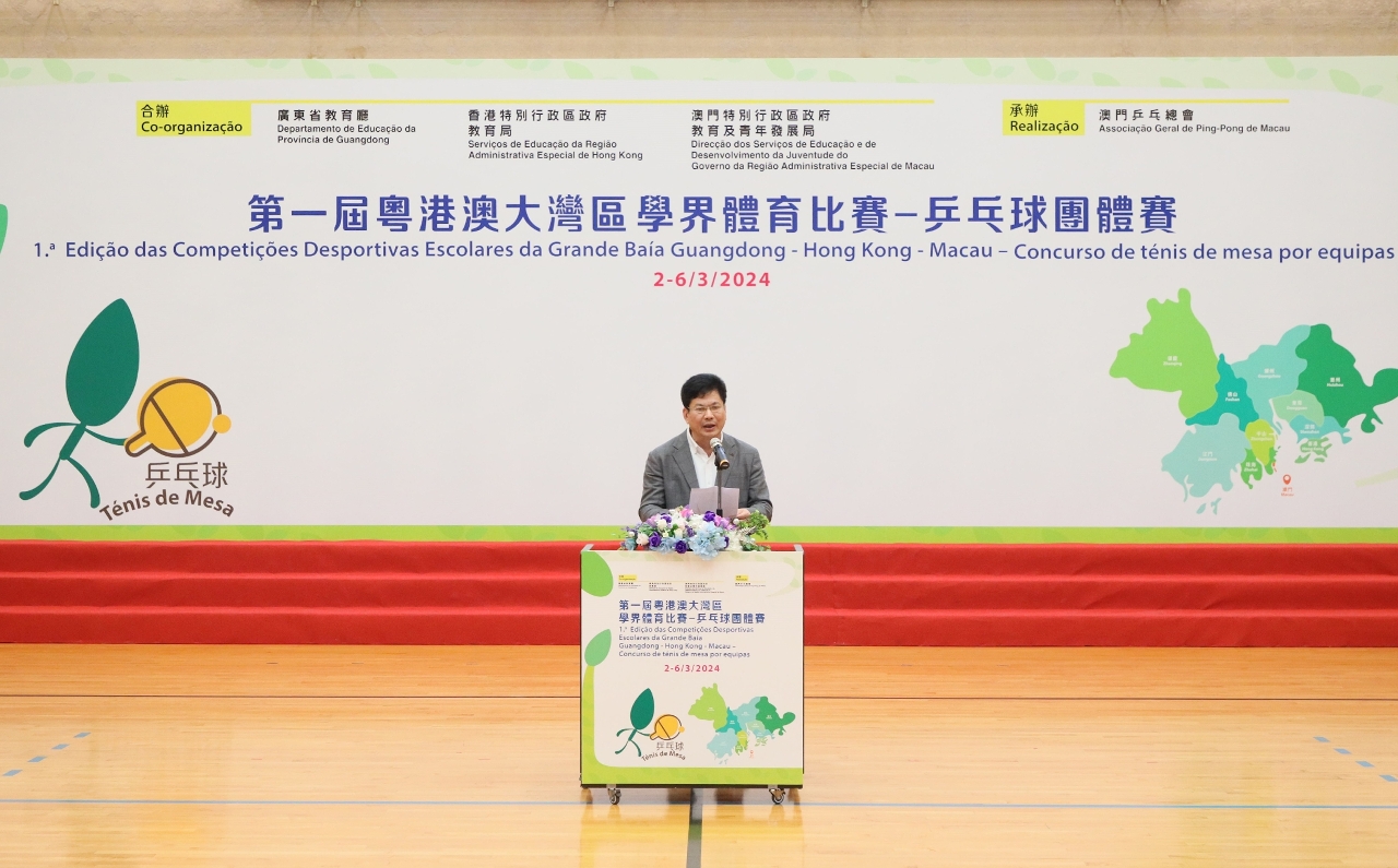 為進一步促進粵港澳大灣區的學生、青年在體育和文化上的交流,粵港澳教育部門共同推進粵港澳大灣區學界體育比賽的工作,以體育凝聚人心。其中,“第一屆粵港澳大灣區學界體育比賽─乒乓球團體比賽”由廣東省教育廳、香港特別行政區政府教育局和澳門特別行政區政府教育及青年發展局合辦,澳門乒乓總會承辦,於2024年3月2日至6日一連五天在澳門舉行。適逢2024年是中華人民共和國成立75周年及澳門回歸祖國25周年,亦是《粵港澳大灣區發展規劃綱要》發佈5周年的重要時刻,活動以體育比賽作為契機,促進粵港澳大灣區各城市的互動和合作,比賽期間更舉行“粵港澳大灣區學界體育教育研討會”,分享各地區學校體育發展的情況,積極推動大灣區城市間的學術交流。