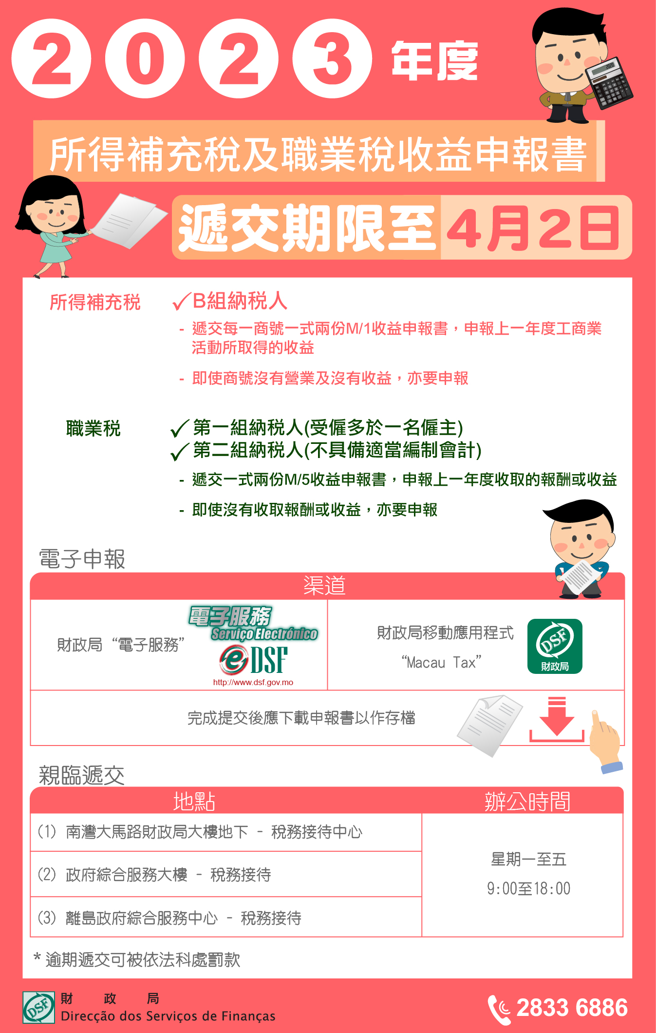 財政局呼籲納稅人按時遞交上述收益申報書,逾期遞交可被依法科處罰款。