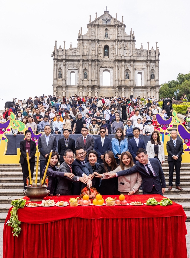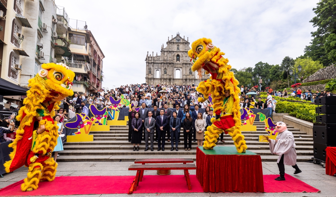 由文化局、銀河娛樂集團、新濠博亞娛樂、美高梅、金沙中國有限公司、澳娛綜合度假股份有限公司及永利渡假村(澳門)股份有限公司聯合主辦的慶祝澳門回歸祖國二十五周年“2024澳門國際幻彩大巡遊”將於3月24日舉行,為祈願活動順利圓滿,各單位代表今天(3月22日)在大三巴牌坊進行拜神儀式,並設醒獅及參與活動的藝團演出助慶,率先讓現場公眾感受大巡遊熱鬧氣氛,吸引眾多市民及旅客圍觀欣賞,氣氛歡愉。