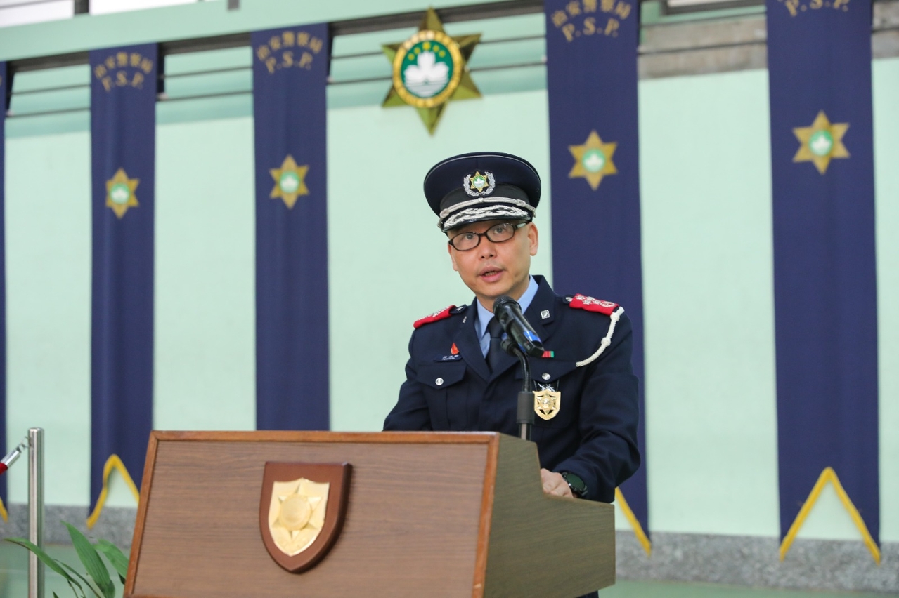 吳錦華局長在儀式上祝賀一眾警員正式成為警隊的新力軍和發展動力;寄語他們要努力不懈、廉潔守法、盡忠職守;隨著本澳更好地融入國家發展大局,粵港澳大灣區以及琴澳深合區加速發展,經濟不斷復甦,社會治安環境將進入新常態,警務人員必須勇於接受各種挑戰,並與時並進,不斷提升各種專業能力及服務質素,維護社會治安,積極服務社會,履行好“護法安民”的崇高使命。