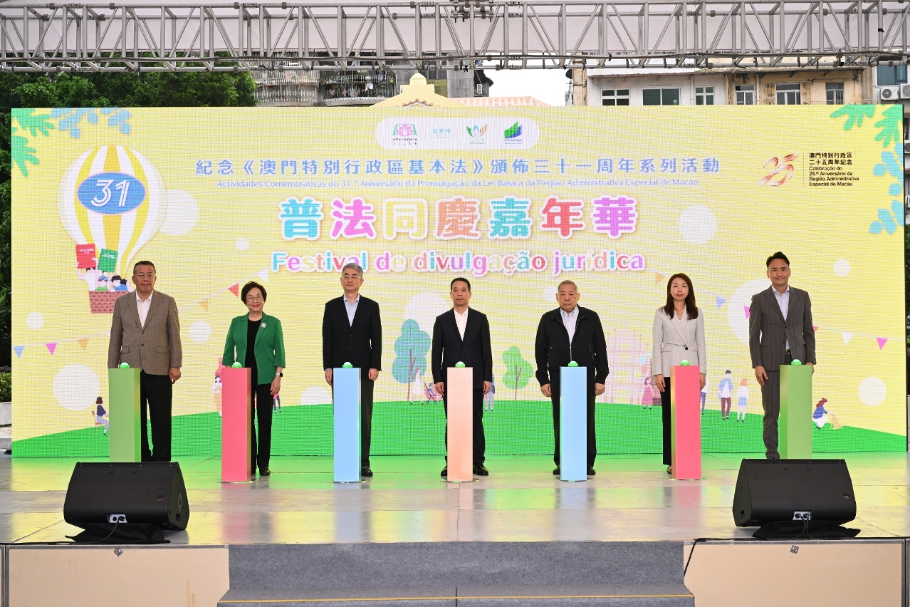 為紀念《中華人民共和國澳門特別行政區基本法》頒佈三十一周年和慶祝澳門回歸祖國二十五周年,澳門基本法推廣協會、法務局、市政署和教育及青年發展局於今(6)日假塔石廣場合辦 “普法同慶嘉年華”,活動吸引逾5000名市民參加。