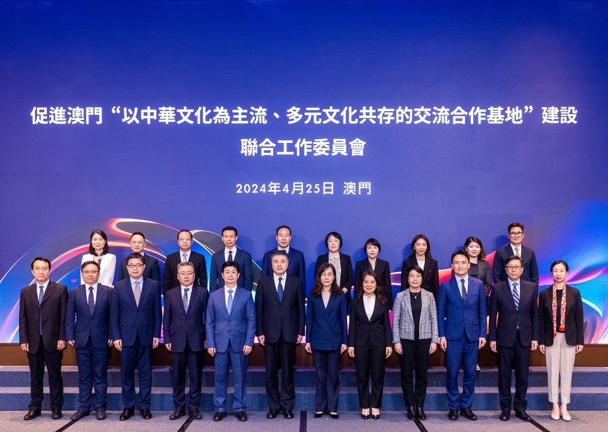 促進澳門“以中華文化為主流、多元文化共存的交流合作基地”建設聯合工作委員會(下稱:聯委會)4月25日召開2024年度會議,文化和旅遊部副部長張政、澳門特別行政區政府社會文化司司長歐陽瑜、中央人民政府駐澳門聯絡辦公室副主任呂玉印及中共中央港澳工作辦公室四局副局長劉文達等出席,會議回顧自2023年成立聯委會以來“一基地”建設的工作成果,並就未來拓展內地與澳門文化交流合作進行討論。