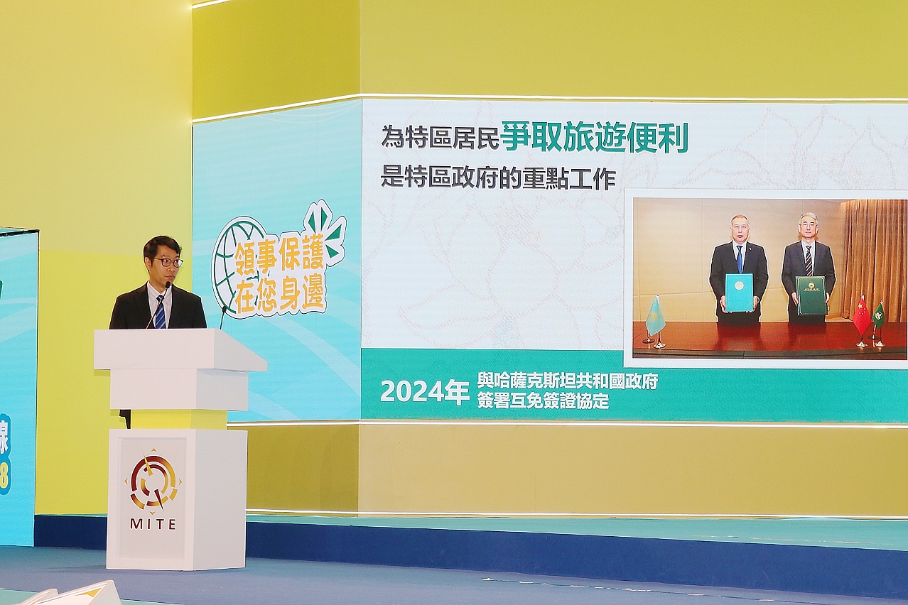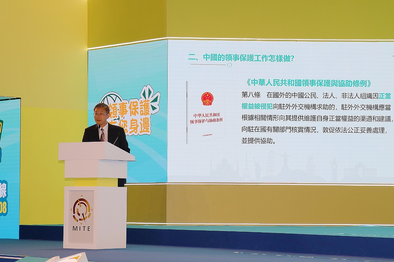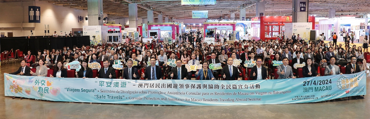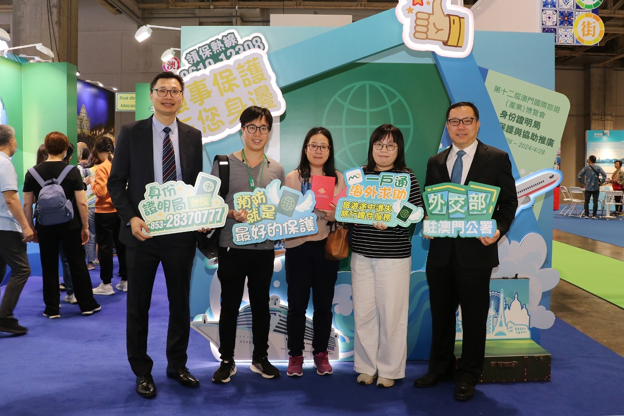 在外交公署的指導下,身份證明局每年均參展“旅博會”,積極向居民推廣領事保護,今年除了設置特色展位,更首次與外交公署及旅遊局合辦“平安澳遊”—澳門居民出國遊領事保護與協助全民篇宣介活動。外交公署副特派員孫向陽致辭時表示高度重視澳門同胞在海外旅行期間的各項安全,始終秉持“以人民為中心”的宗旨,積極踐行“外交為民”理念。身份證明局局長周偉迎及旅遊局局長文綺華均表示冀宣介活動讓居民加深認識領事保護,提前了解海外求助資訊,提高外遊安全意識。