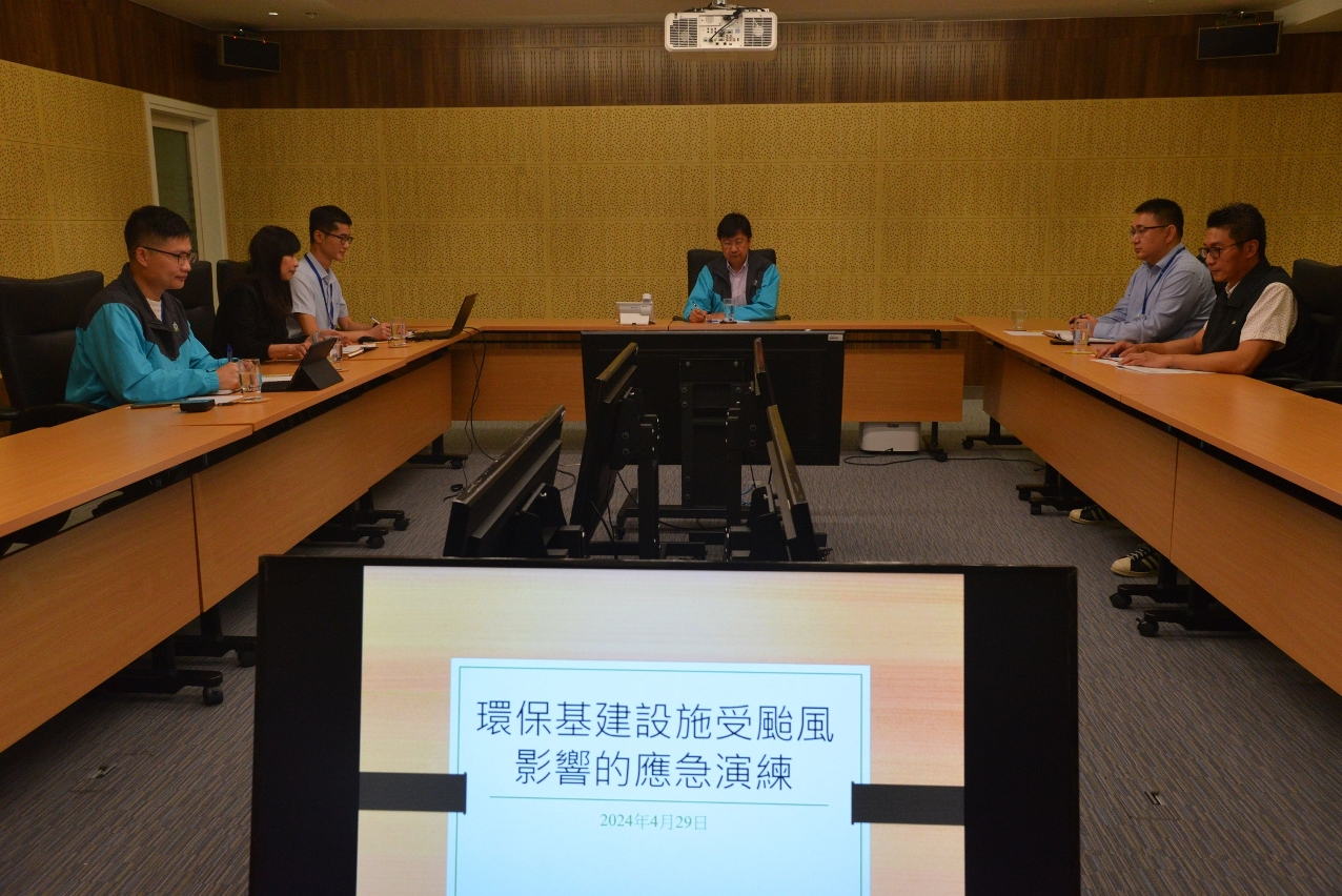 為提升颱風吹襲等緊急事故下的應急處理能力,環境保護局昨日(4月29日)就轄下的環保基建設施進行模擬演習。