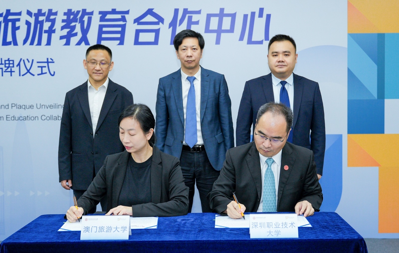 澳門旅遊大學與深圳職業技術大學攜手共建“深澳旅遊教育合作中心”。合作協議簽署及揭牌儀式於2024年4月29日,在深圳職業技術大學建立的“粵港澳大灣區特色職教園區”內舉行;深圳市港澳辦副主任何新紅、交流合作處二級調研員甘孌孌、廣東省教育廳交流合作處副處長陳琦及深圳市教育局主任督學蔡茂洲出席見證。
