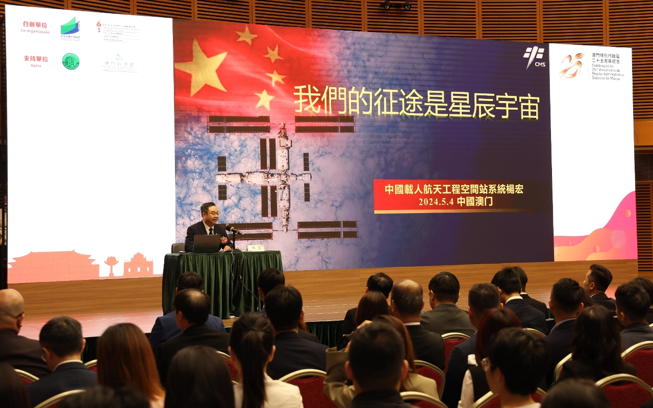 首先,楊宏院士以“我們的征途是星辰宇宙”主題,分享國家在航天領域的“三步走”發展思路,並即場演示了太空站的建造過程,展現出工程師們的智慧和心血。最後,楊宏院士寄語澳門青年要有清晰的思路,提升分析和解決問題能力,善於溝通,具有團隊合作精神,樹立正確的人生觀和價值觀,期望年青人立志用卓越鑄就輝煌,用成功報效祖國。