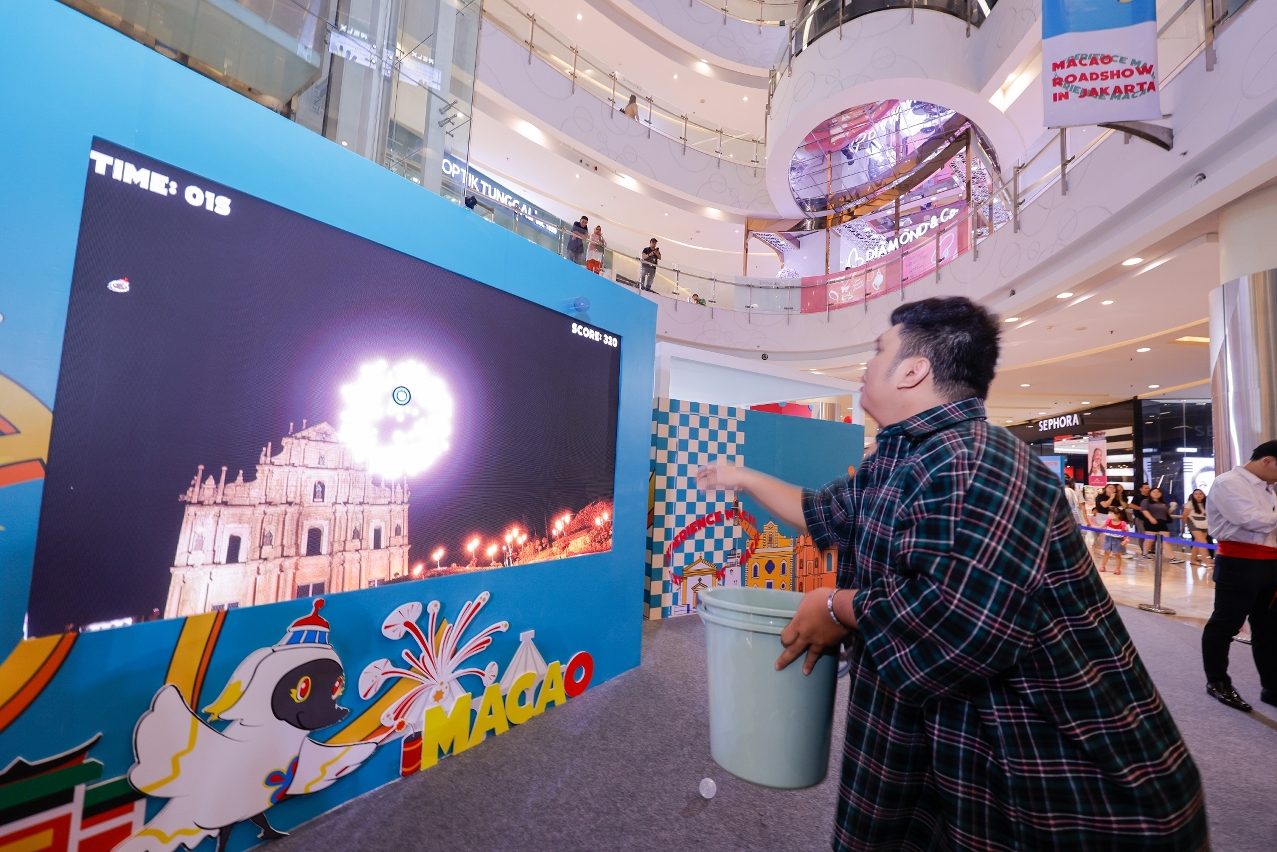 5月9至12日在印尼雅加達中央公園購物中心舉行的“感受澳門”雅加達路展圍繞“EXPERIENCE MACAO”主題,打造多個趣味好玩的互動遊戲區,包括VR體驗“雲”遊澳門、澳門格蘭披治大賽車模擬器、煙花創作體驗遊戲及巨型葡撻打卡點互動裝置,展示澳門多元“旅遊+”元素。