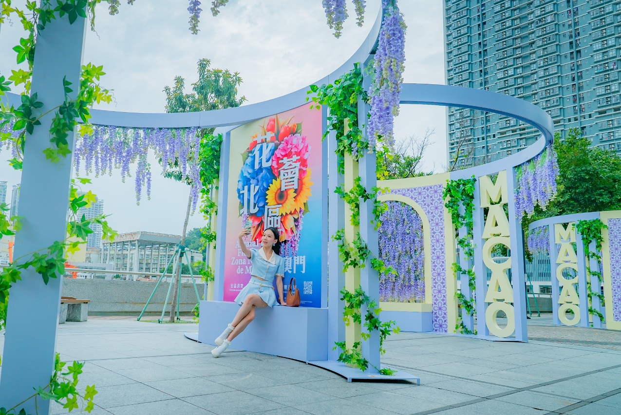 繼4月底推出“綠野迷蹤”及“願望花廊”兩組大型打卡裝置後,今(22)日再推出兩組新裝置,分別是設於黑沙環公園圓形地的“奇夢拱築”裝置,以太陽花為主題打造出充滿活力的巨型花拱門;以及設於筷子基北灣休憩區的“細說花語”裝置,以紗簾般垂下的紫藤花打造成區內休憩和打卡好去處,讓市民和旅客從生活中放慢腳步,感受悠然愜意的一刻。