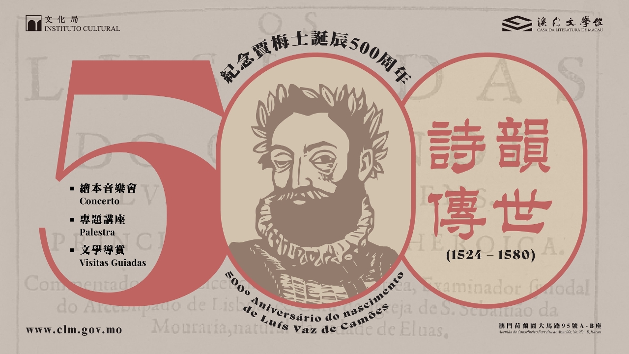 2024年是葡萄牙著名詩人賈梅士誕辰500周年,為積極推動中葡文化交流及加深公眾對葡語文學作品的認識,文化局將於6月期間在澳門文學館舉辦繪本詩歌音樂會、專題講座及文學導賞遊,歡迎公眾踴躍報名參與。