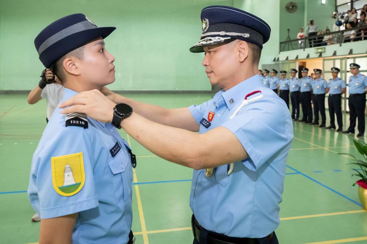 今(23)日下午,治安警察局在特警隊大樓舉行首席警員晉升儀式,儀式由吳錦華局長主持,出席儀式的有梁慶康副局長以及各部門主管,有關領導主管為獲晉升的首席警員戴上新肩章。