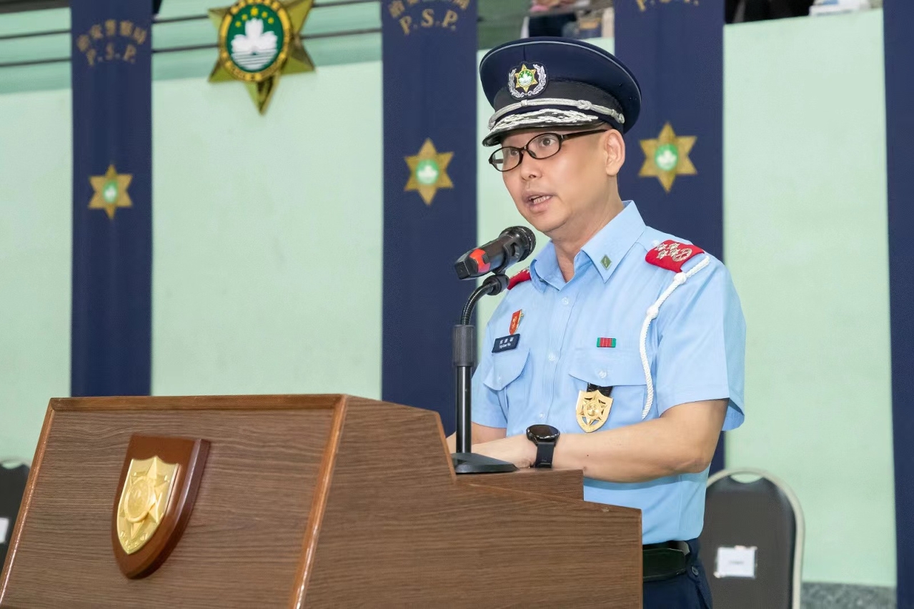 吳錦華局長致辭時祝賀獲晉升人員,同時勉勵他們在新的工作崗位上,充分發揮自身的工作經驗,為保障社會安全、和諧、穩定而竭盡所能,無畏難關險阻,上下團結一心,為警隊開創嶄新的優越景象。此外,適逢今年是中華人民共和國成立75周年以及澳門回歸祖國25周年,各人員務必全力以赴,切實做好一系列安保工作,以確保社會治安穩定及各項慶祝活動順利進行。
