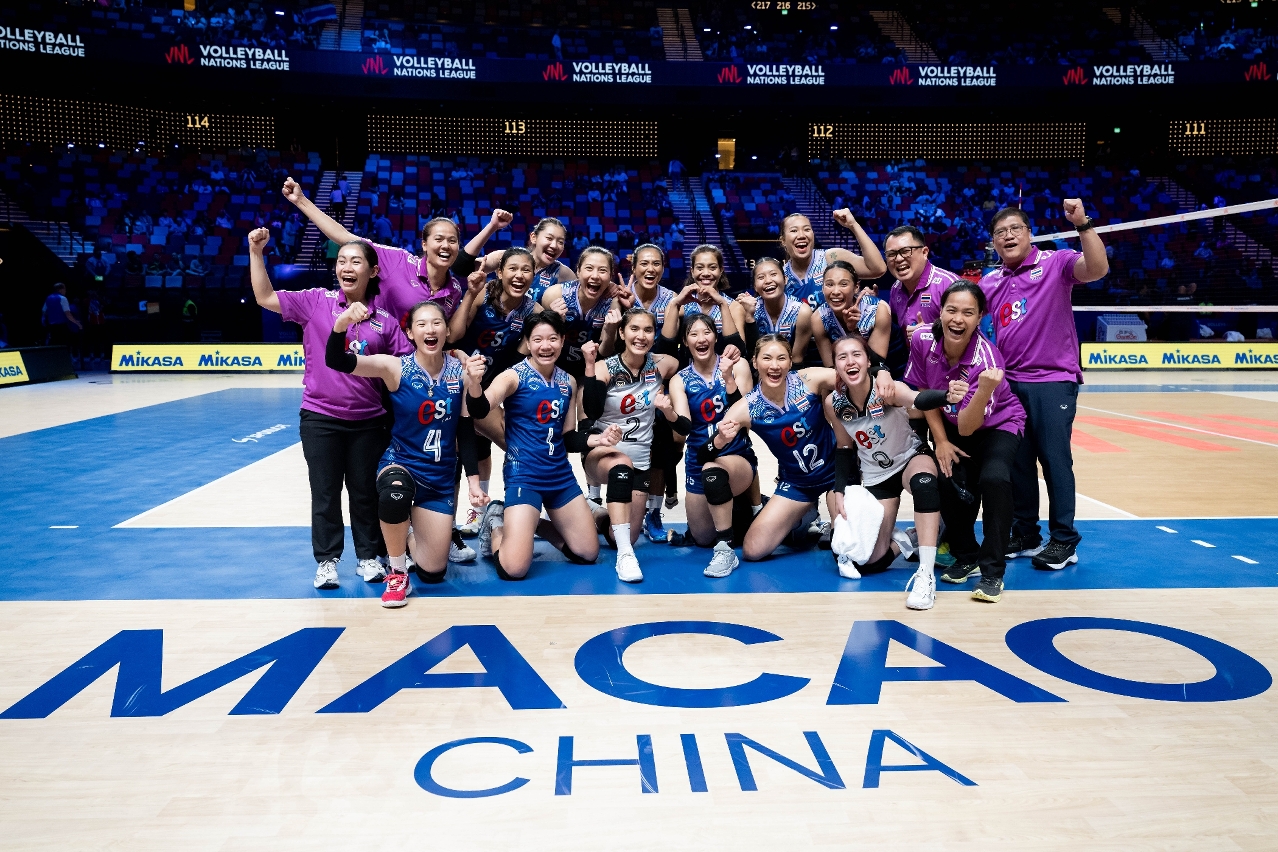「銀河娛樂集團世界女排聯賽澳門2024」展開,首場賽事由泰國隊對多明尼加共和國隊,兩隊開賽後迅速入局,多明尼加共和國隊雖攻擊得分較佳,但在攔網多番失誤情況下,被泰國隊以25比22先取一局;第二局,多明尼加共和國隊及時回勇,以25比20扳平局數1比1;隨後兩隊重回起點,但泰國隊發揮持續出色,憑藉多位球員多點得分下助球隊以25比17再度領先局數2比1;乘勇的泰國隊在第四局繼續壓制對方,多次強攻湊效,終以26比24摘下勝仗,局數勝3比1,取得球隊於本年世界女排聯賽的首場勝利。