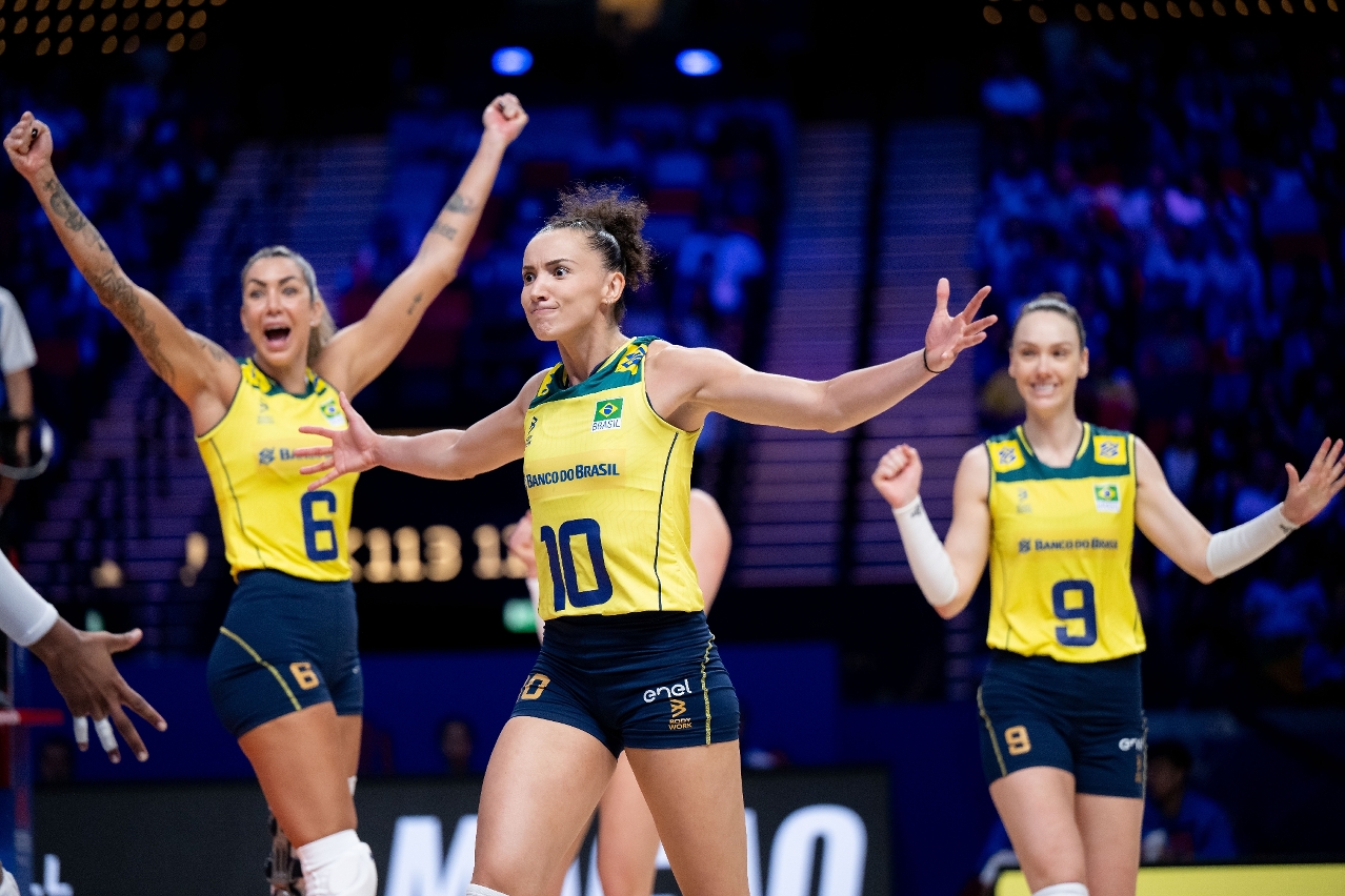 巴西隊今場對戰日本隊上演精彩激鬥,日本隊首局憑較佳接發球得分,以26比24領先巴西;第二局,兩隊續展開拉鋸,巴西在領先23比20情況被日本連續攔網成功追平24比24,頂著壓力的巴西驚險再取2分以26比24戰平局數1比1;其後日本隊與巴西隊分別以25比19及25比20各取一局;進入決勝局,巴西隊把握較佳,在隊長加比及泰爾莎帶領下早段建立7比3優勢,最終以15比11擊退日本,局數3比2取勝,由聯賽第2位暫躍升至首位。