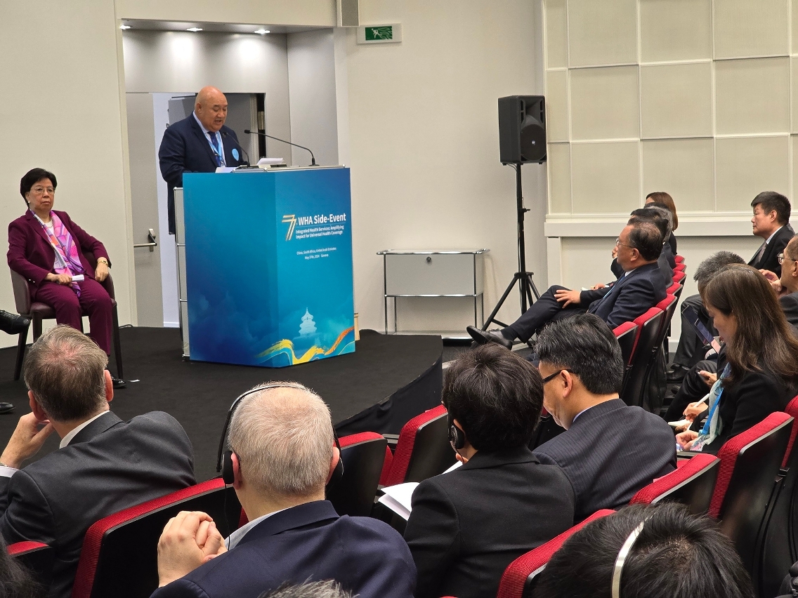 歐陽瑜司長率領的代表團,除出席世界衛生大會開幕儀式及全體會議外,亦參加了由國家衛生健康委員會、南非共和國和阿拉伯聯合酋長國衛生當局合辦以整合型醫療服務為主題的邊會。是次邊會由清華大學萬科公共衛生與健康學院院長陳馮富珍醫生主持,國家衛生健康委員會副主任曹雪濤在邊會上致辭,歐陽瑜司長與衛生局羅奕龍局長就全民健康覆蓋和社區醫療服務,與多名與會者包括清華大學萬科公共衛生與健康學院常務副院長梁萬年、浙江省長興縣衛健局黨委書記敖新華進行了深入討論和交流。歐陽瑜司長非常認同整合醫療服務在全民健康覆蓋中的重要作用,澳門特別行政區政府秉持“預防優先,妥善醫療”的施政理念,致力保障澳門居民健康。自上世紀80年代起,以社區衛生中心為單位,建立起覆蓋全澳各區、涵蓋全生命週期、全方位惠及全澳居民的社區醫療保健網絡,故此,澳門的實踐經驗在世界各國推動全民健康覆蓋工作中可起到參考作用。