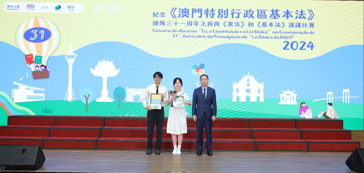 為持續向青年學生推廣《憲法》和《基本法》,澳門基本法推廣協會、法務局、教育及青年發展局和市政署聯合主辦的“紀念《澳門特別行政區基本法》頒佈三十一周年之我與《憲法》和《基本法》演講比賽”個人決賽及頒獎禮於5月28日在澳門科學館會議中心順利舉行。