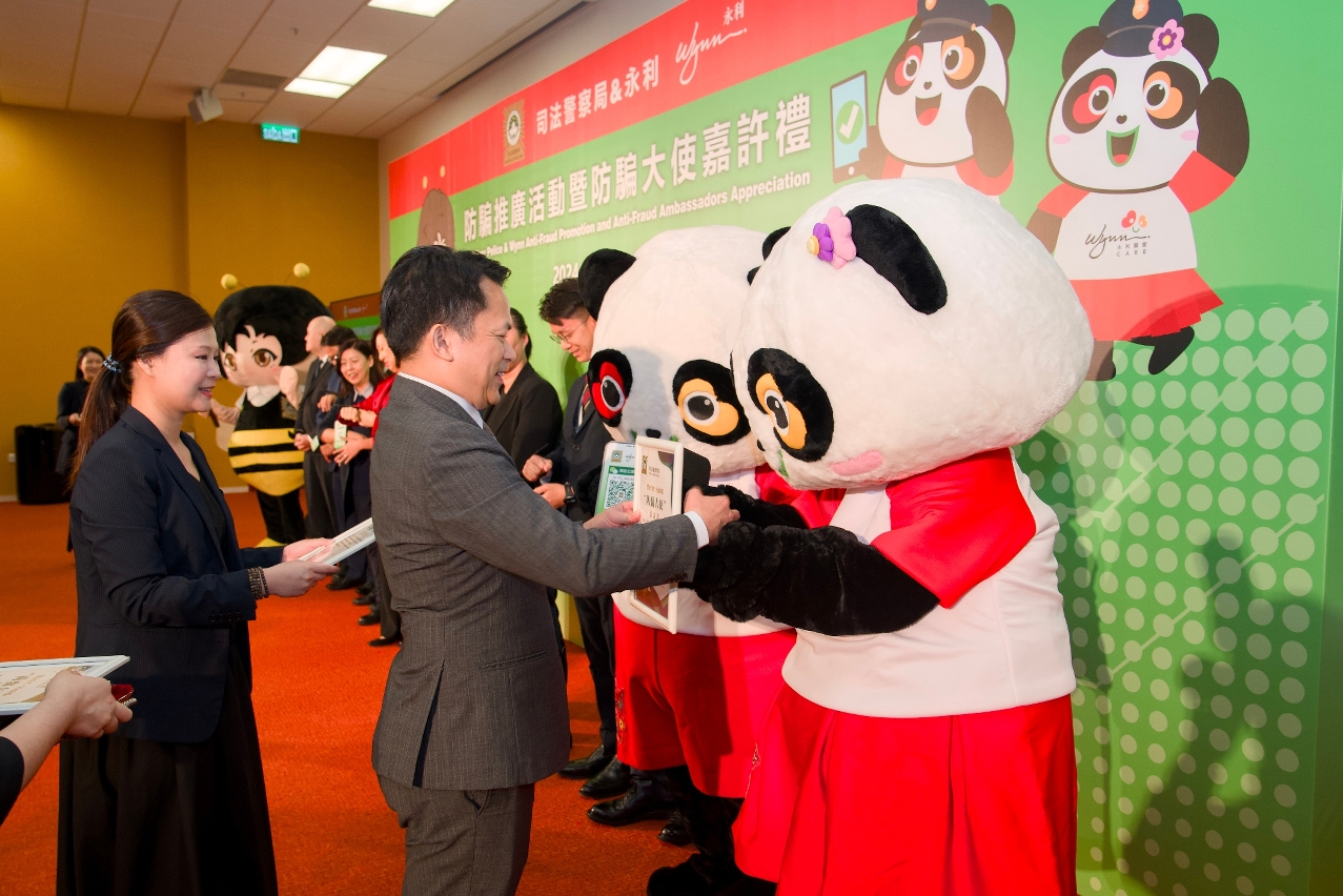 另外,活動上亦舉行“防騙大使"嘉許禮,由司警局副局長蘇兆強向8名企業員工頒授“防騙大使"榮譽稱號。設立“防騙大使"榮譽稱號旨在鼓勵公眾成為防騙訊息的傳播者,激發其責任感與使命感,“防騙大使"將成為企業內部的防騙宣傳先鋒,帶動同事、親友轉發防騙資訊,協助警方將防騙資訊滲透社區,警民合力共建社區防騙屏障。