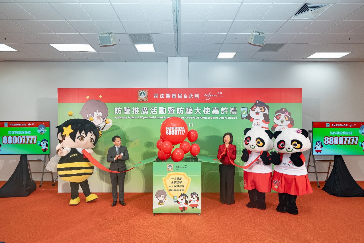 近年來部分旅遊博彩業從業員不慎墮入電訊及網絡詐騙陷阱,為切實增強業界的防範意識及能力,司法警察局應永利渡假村(澳門)股份有限公司邀請,日前共同合辦“永利防騙推廣活動暨防騙大使嘉許禮”,並在該企業旗下各娛樂場後勤區設置防騙互動體驗及攤位遊戲,吸引逾2,400名員工到場瞭解最新防騙資訊。活動上,司警局向8人授予“防騙大使"榮譽稱號,以助局方在企業內部宣揚防騙訊息。