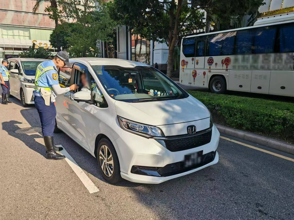 查車行動方面,共截查40輛車輛,合共檢控9宗違例(4宗行駛中使用手提電話、1宗車牌不合規格、3宗沒有佩戴安全帶、1宗沒有保險)。