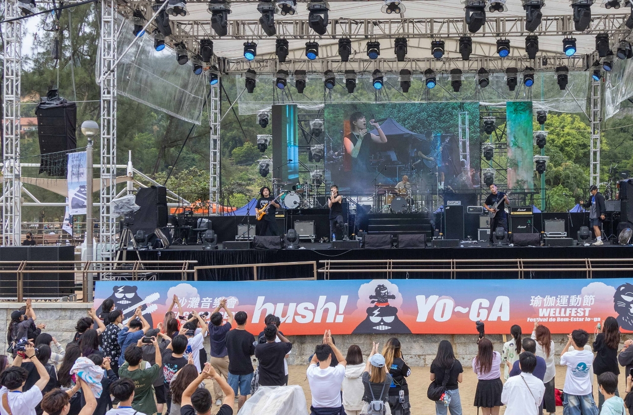 由文化局與美高梅合辦,市政署、海事及水務局、旅遊局協辦的“hush! 沙灘音樂會 x Yo~ga 瑜伽運動節2024”於今日(11月9日)在黑沙海灘開鑼,並舉行“hush! 300秒音樂短片比賽”頒獎典禮。一連兩日的馬拉松式音樂瑜伽盛會,集結30多位亞洲星級健身及瑜伽導師、近60隊海內外樂隊、音樂人及藝術工作者輪番上陣,帶來精彩的瑜伽運動課程及音樂表演。