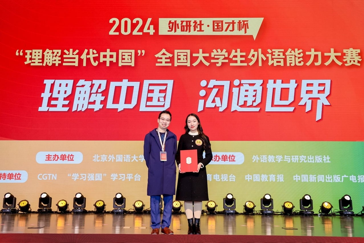 澳門大學學生李響在2024“外研社‧國才杯”全國大學生外語能力大賽國賽表現出色,在英語組國際傳播綜合能力賽項中獲得全國季軍。比賽在全國共有31個省千餘所院校約70萬名學生參加。經過10個月的初賽、複賽和省賽,共有1,138名選手進入全國決賽階段。