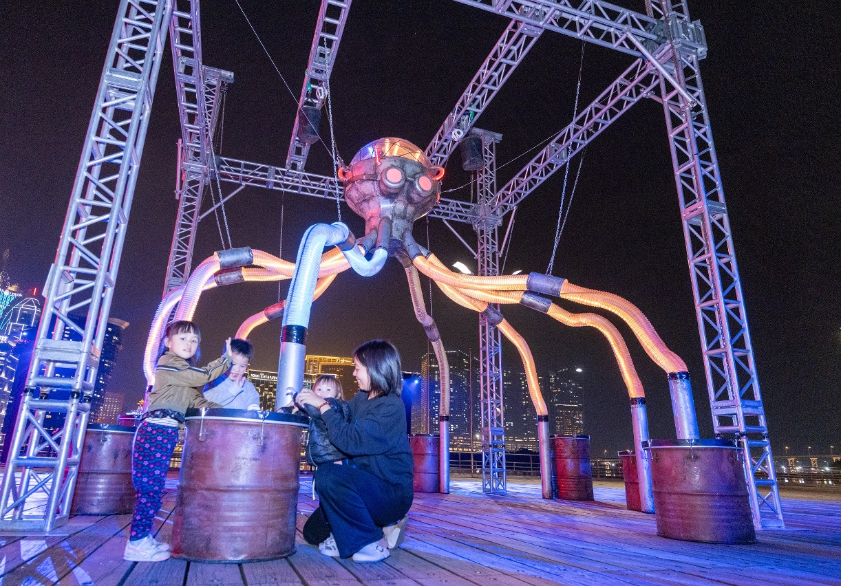 南灣區 -“Octopoda”(互動裝置):以章魚為靈感,透過八個桶鼓讓觀眾控制機械章魚,提升對海洋生物多樣性和生態保育的關注。