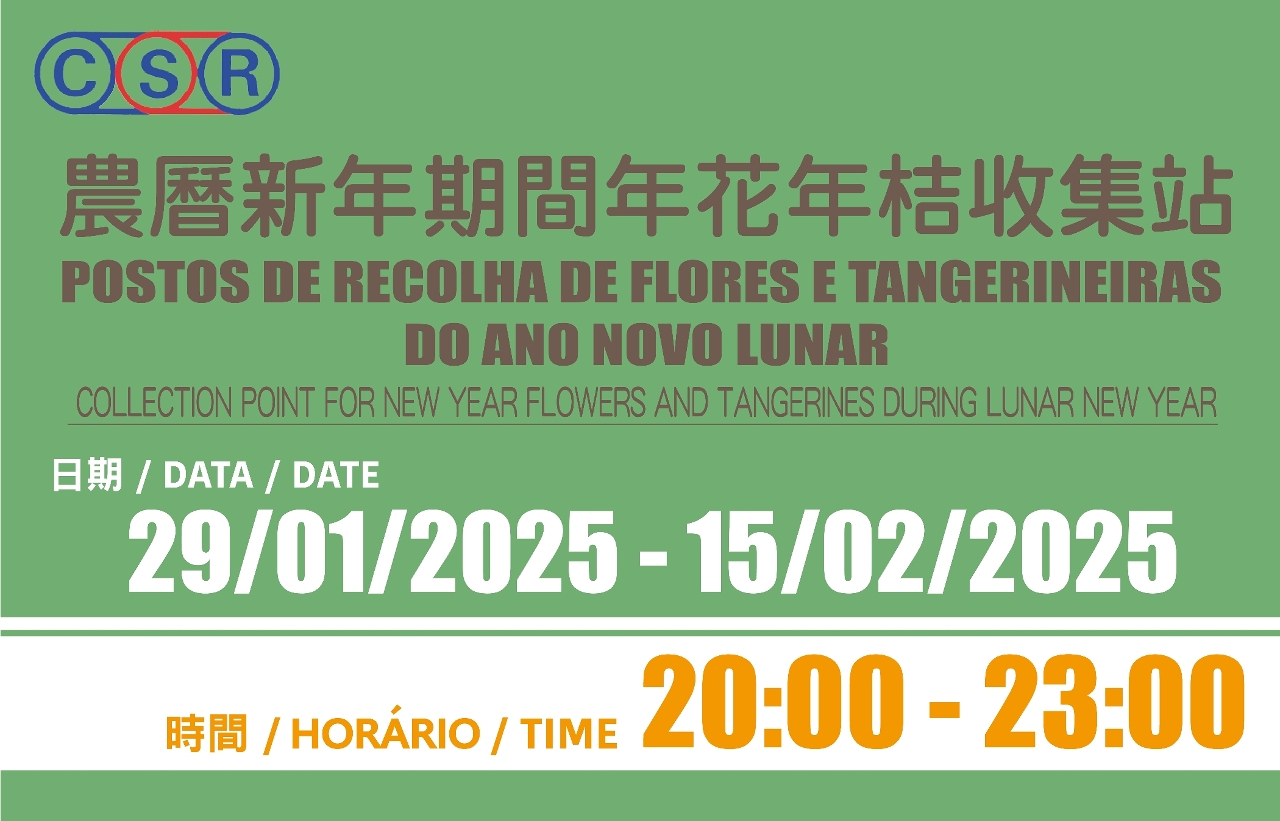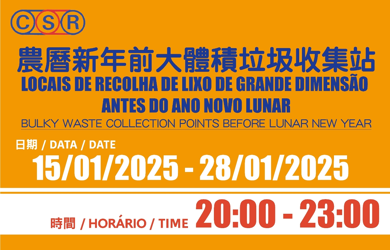 農曆新年將至,市政署於各區設置136個大體積垃圾收集站,方便市民棄置大型家具,並將於新春期間將大體積垃圾收集站改為年花年桔收集站,回收再用綠色資源。市政署呼籲市民配合相關安排,妥善棄置垃圾;同時,市政署將加強巡查,呼籲飲食及零售場所做好環衛及食安工作,共同維護城市清潔衛生。